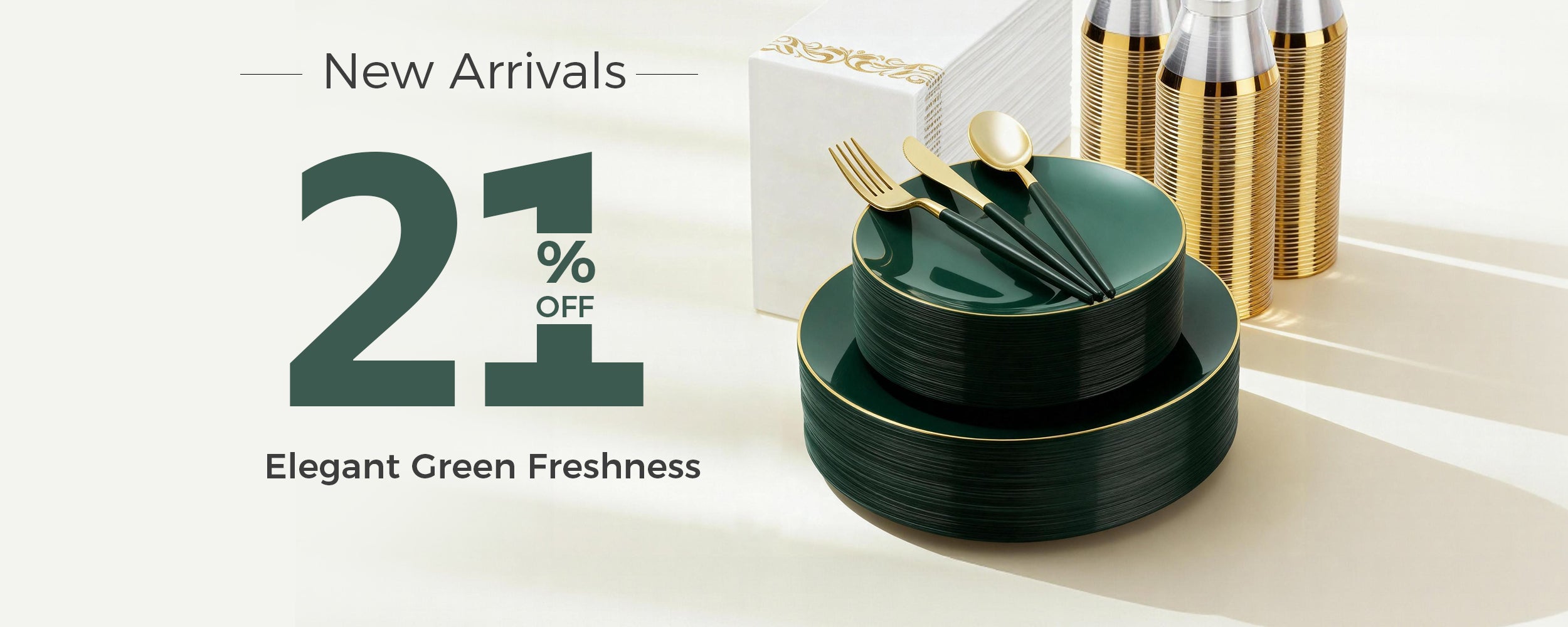 Goodluck Disposable Green and Gold Plastic Dinnerware Set