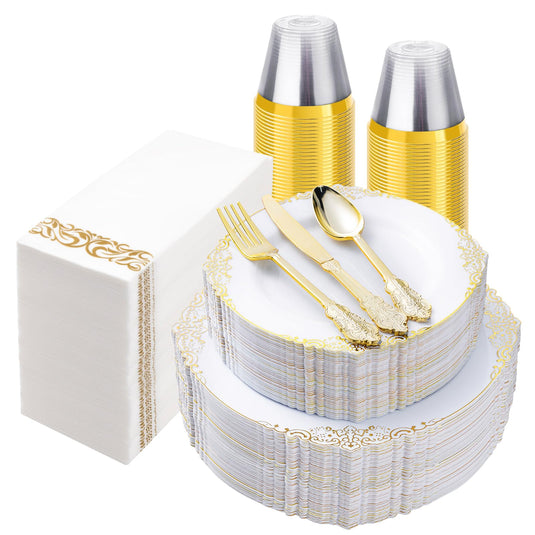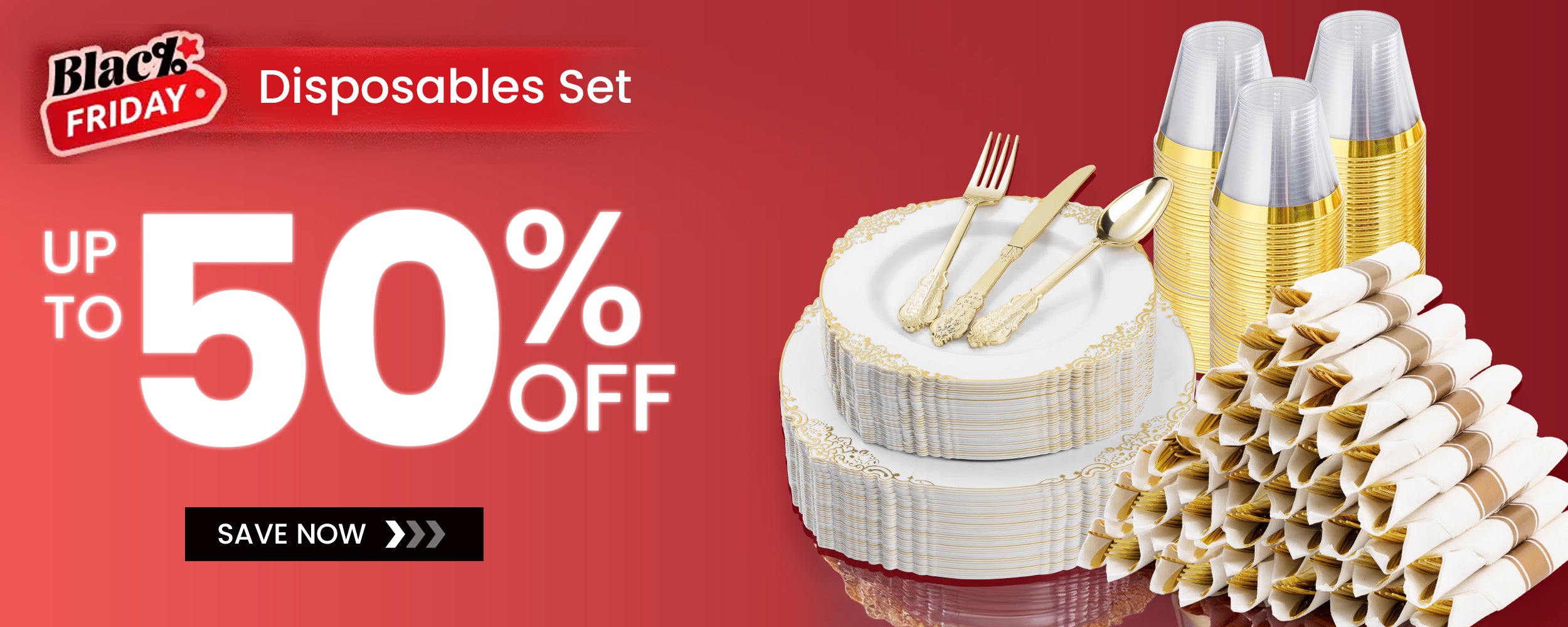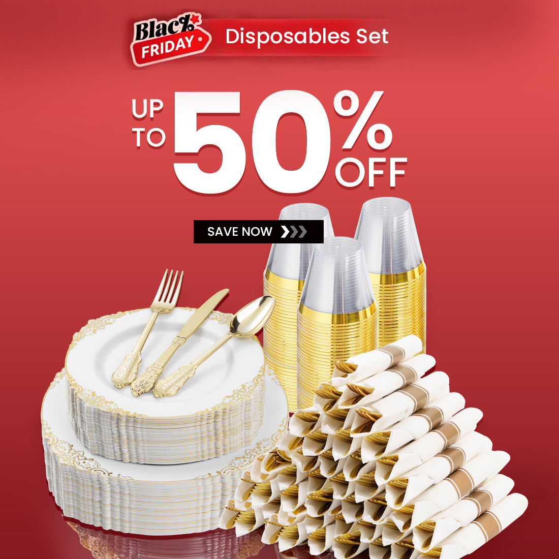 Up to 10% offGoodluck 600-Piece Disposable Clear Gold Plastic Dinnerware Set for 100 Guests