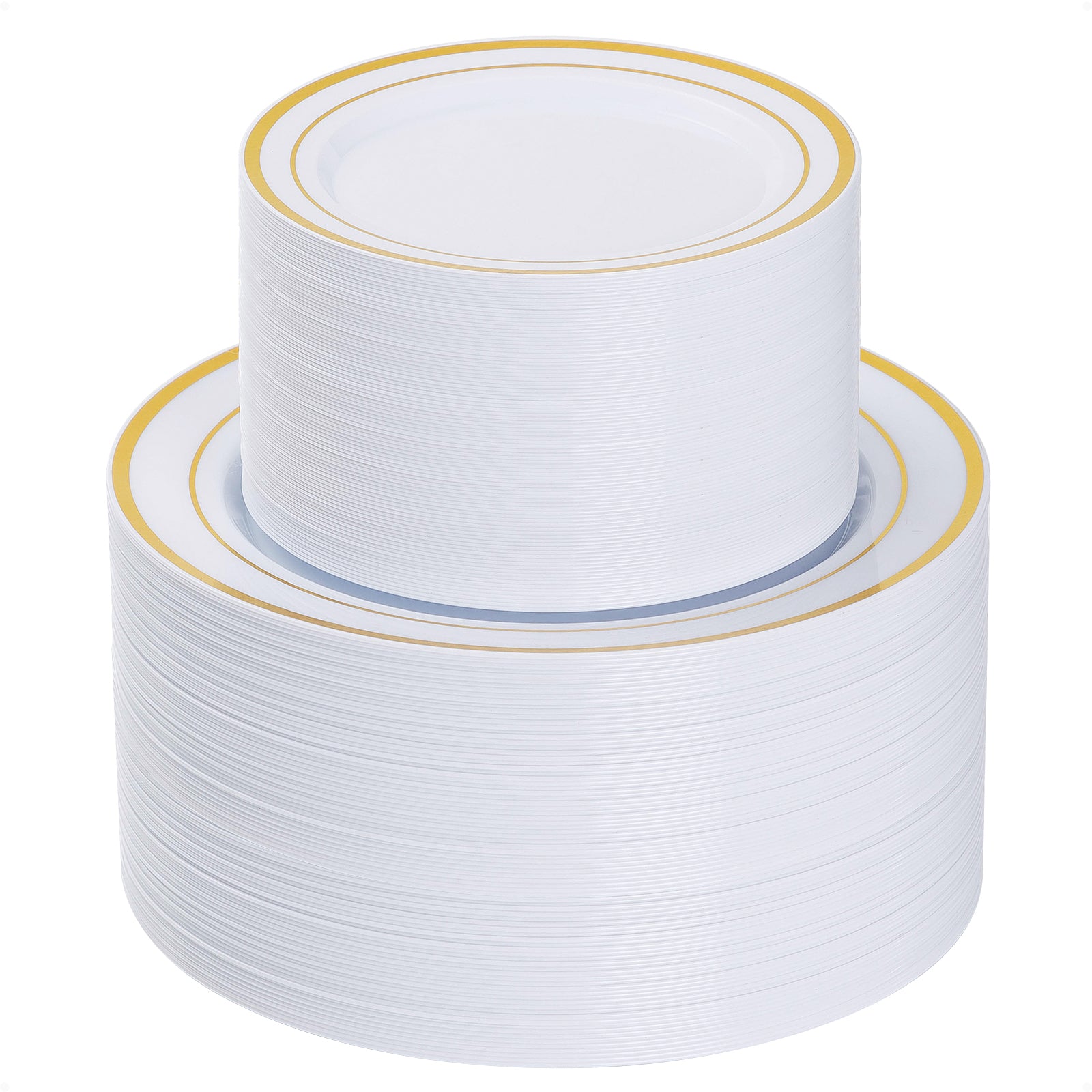 Goodluck Heavy Duty Disposable White and Gold Plastic Plates