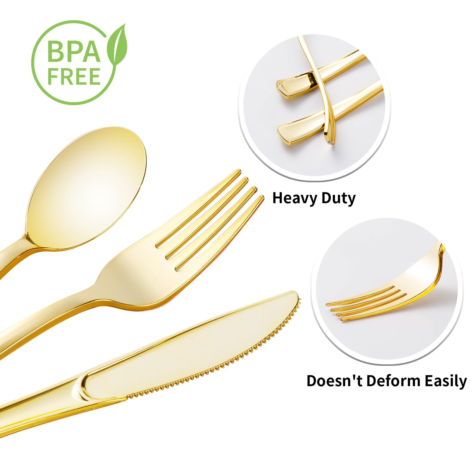 Goodluck 100 Pack Pre-Rolled Gold Plastic Silverware Set