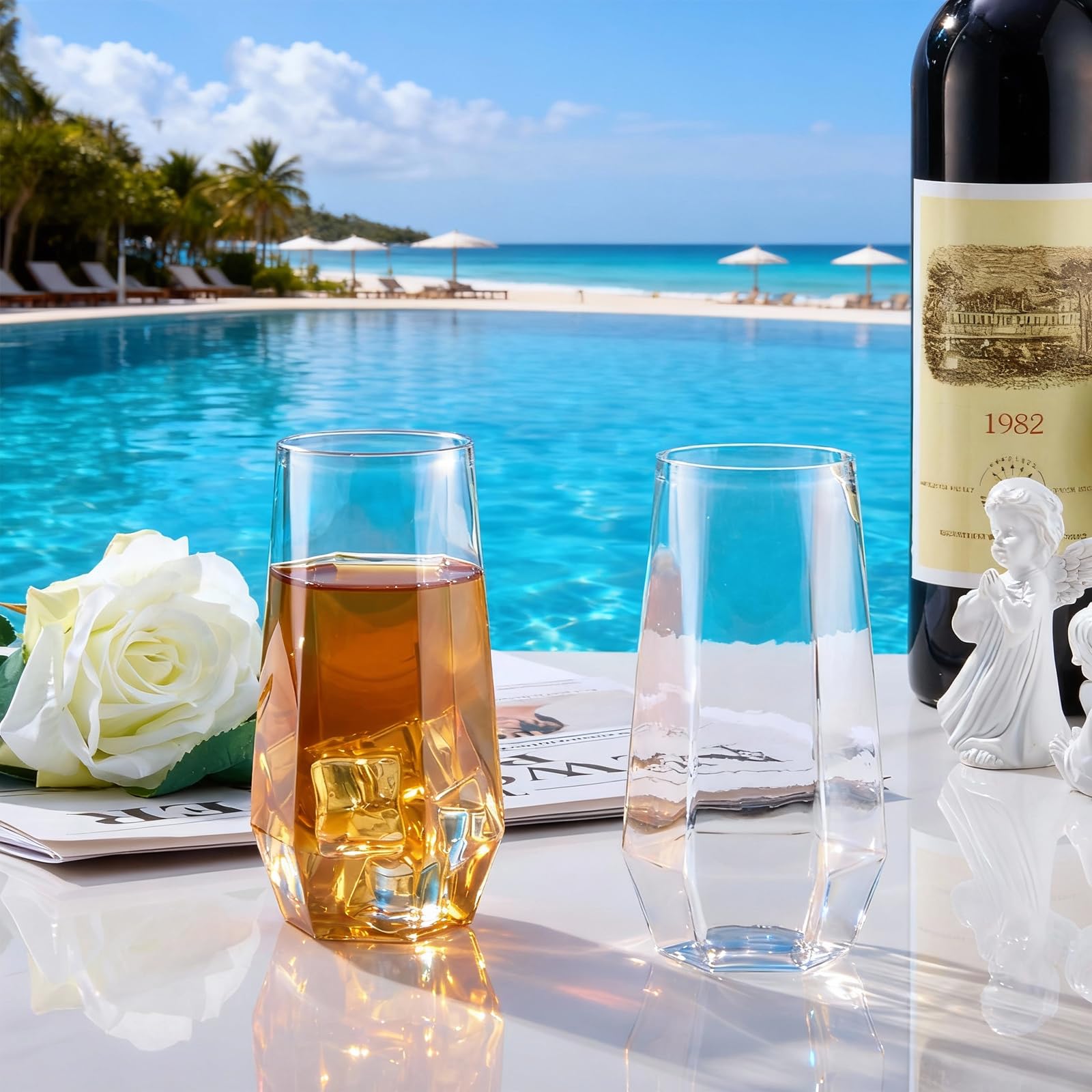 These glasses look surprisingly elegant for being plastic—the diamond-cut design gives them a classy, upscale feel that worked beautifully for cocktails and champagne toasts. Guests were genuinely impressed and thought the glass was real.