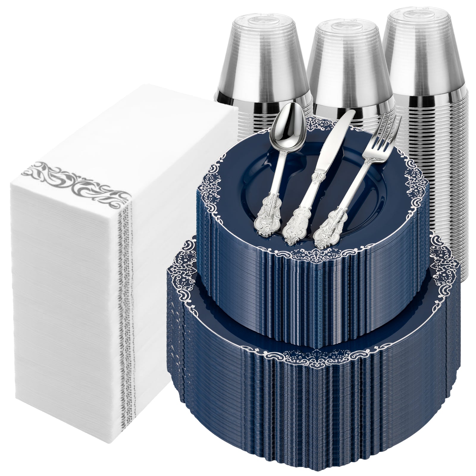 Goodluck 350PCS Disposable Navy Blue Plastic Dinnerware Sets for Party, Wedding and Graduation