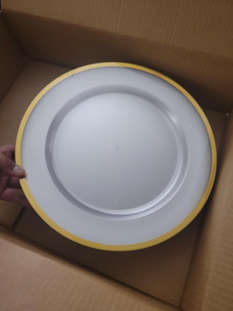 These gold rimmed chargers add such a touch of elegance to a dinner table. They are not incredibly sturdy and I don't know if it will work to use them more than once or twice, but they are reasonably priced to be disposable if that's how it works out. I'm planning to use them on the table of a tropical themed party. The food will be served buffet style, but I still want the tables and place settings to feel elegant and high end. These chargers are just the thing to designate places, make the tables beautiful and take the buffet dinner up a level or two. Very pleased!