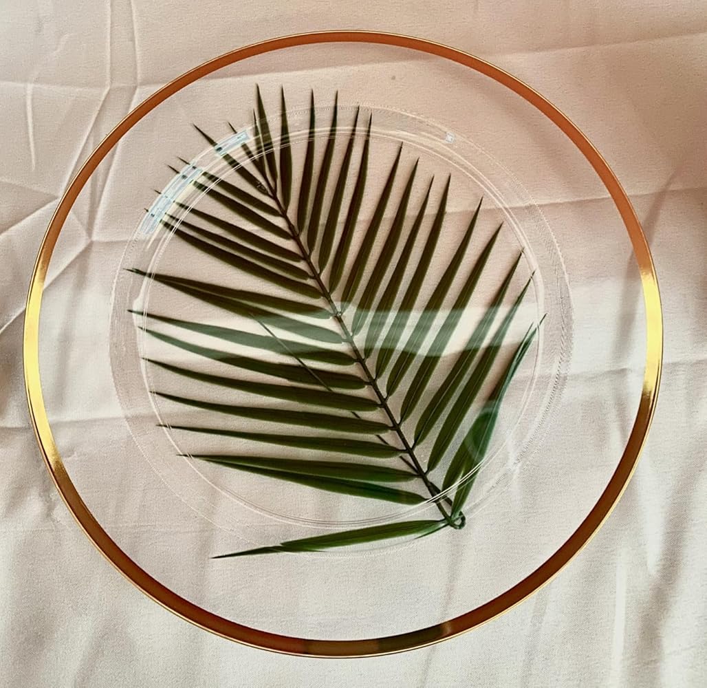 Goodluck 12 Inch Clear Charger Plates with Gold Trim