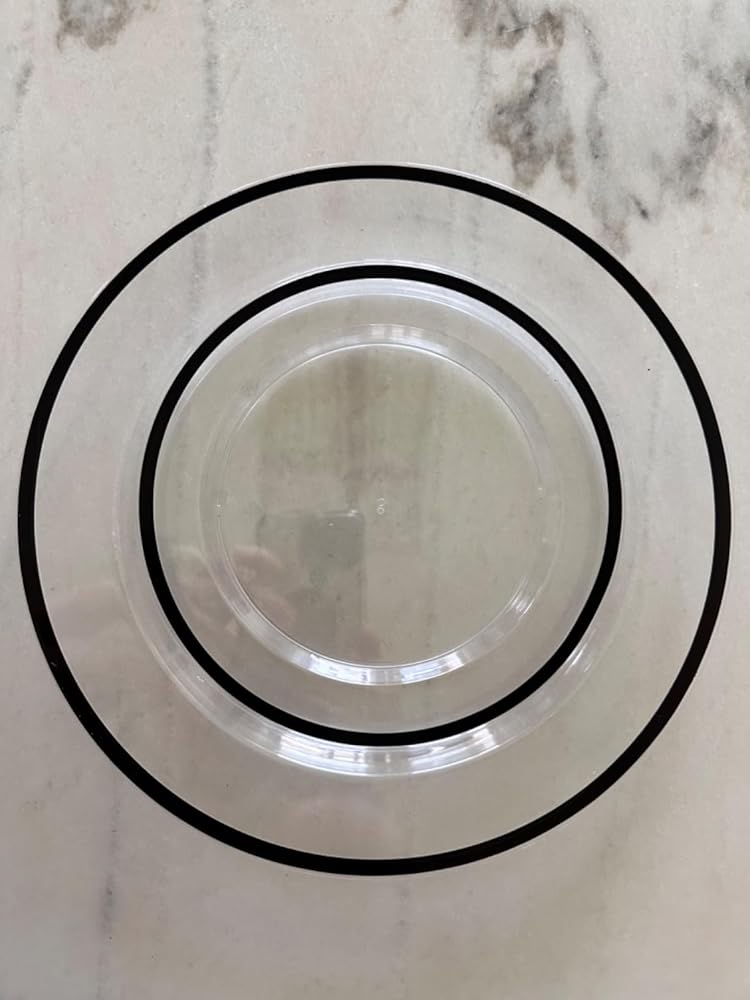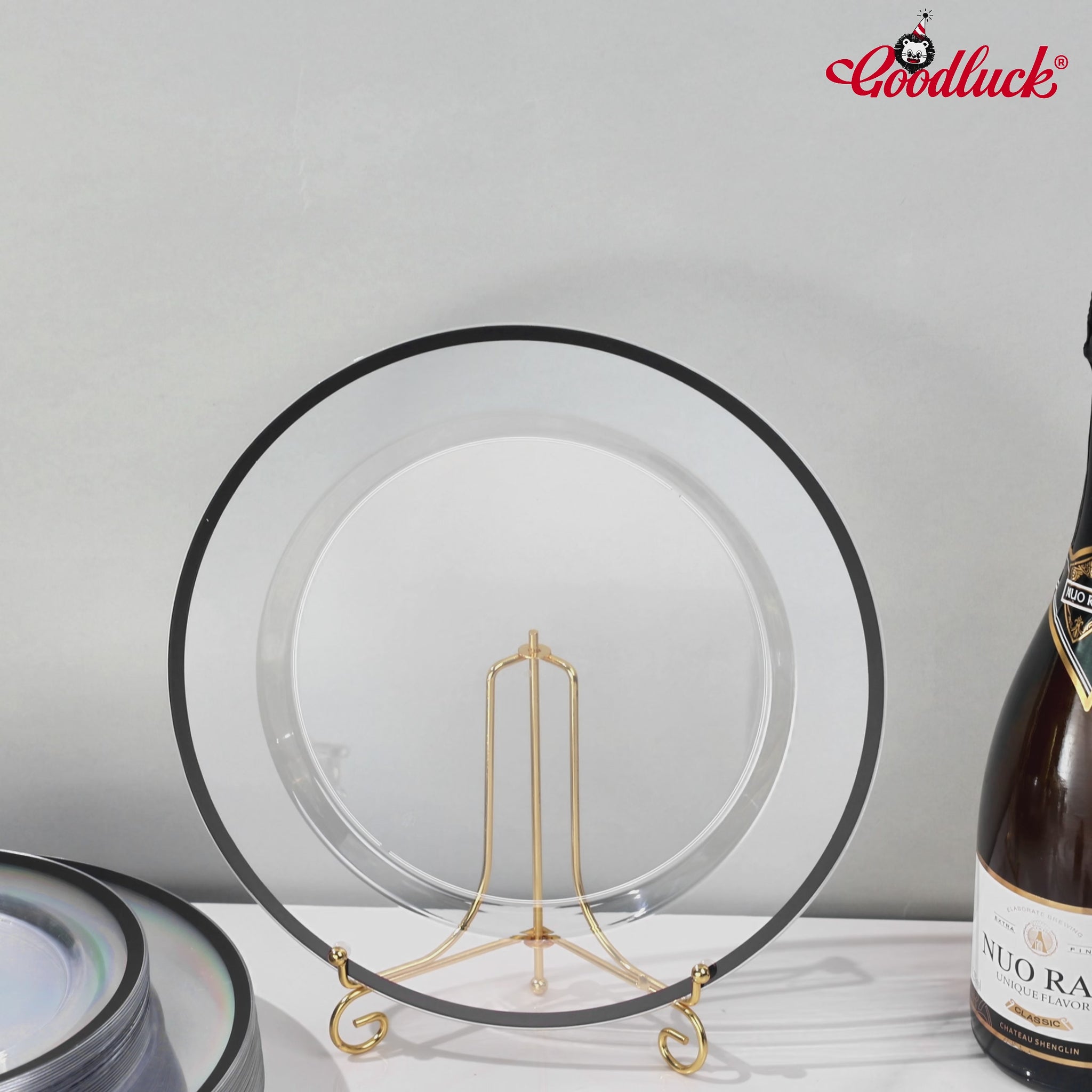 Goodluck Disposable Clear with Black Rim Plastic Plates Set for Parties