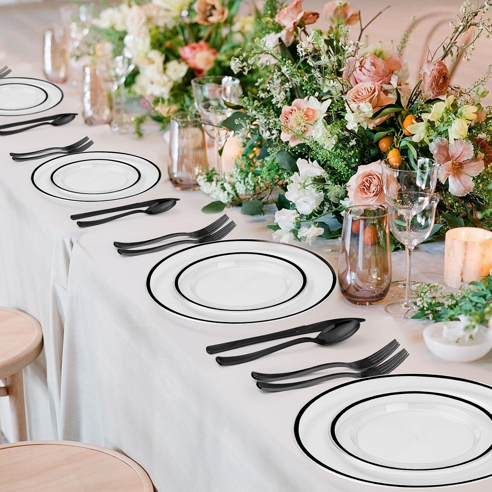 Goodluck Disposable Clear with Black Rim Plastic Plate Set for Parties