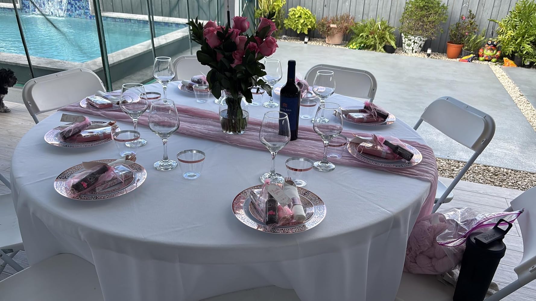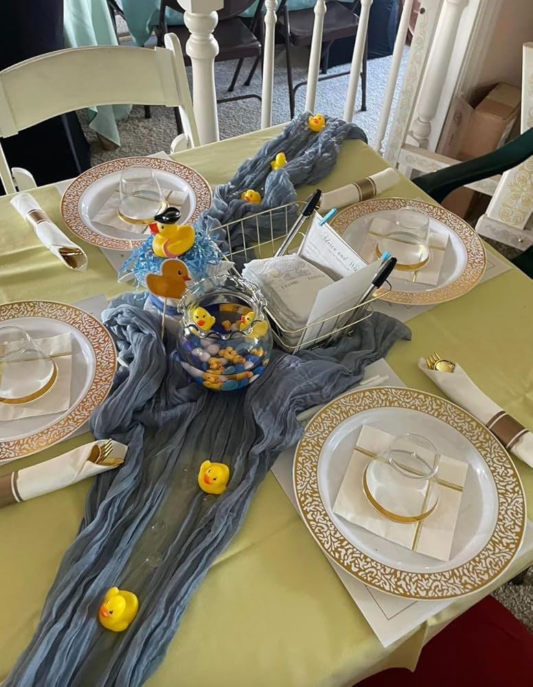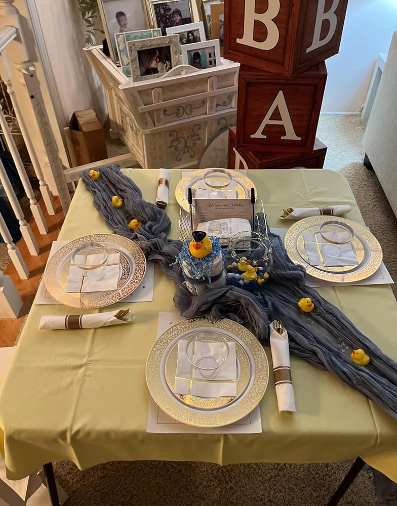 This set contains everything you need to host a great, classy looking party! We used every piece for my sister's baby shower and it was absolutely perfect for the setup. From far away, they really do look like they're real and nice china. We've come so far from the days of horrible, ugly paper plates! And it really is perfect that the silverware arrives pre-rolled in this set - makes setting up so much easier, but it would also be great to put in a little basket and have at the end of a buffet line. I was very impressed with this kit and I know you will be too!