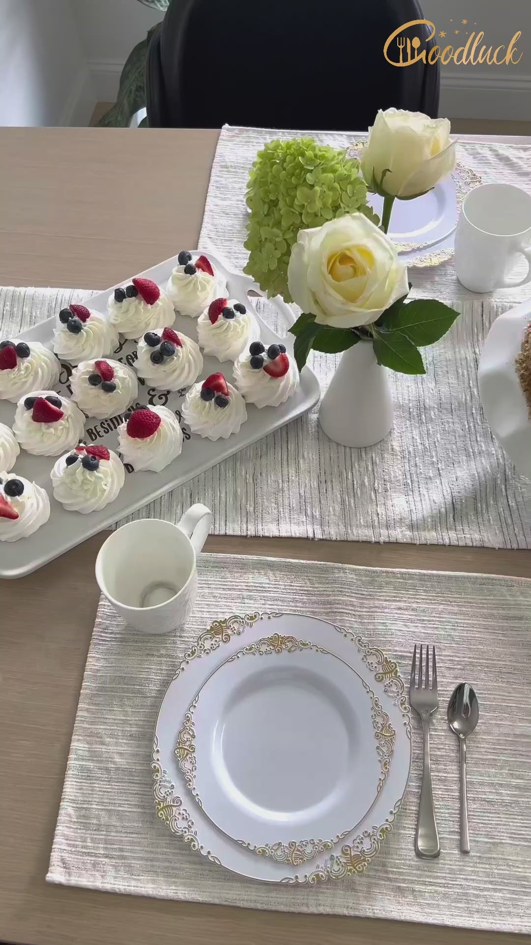 These Bestluck plates added a touch of sophistication and class to the wedding shower. I paired them with the corresponding which Bestluck plates and the place settings were definitely first class! The plates were sturdy and the two sizes were perfoect for a main dish and salad. Everybody commented on how beautiful the setup was. I'd do it all over again!