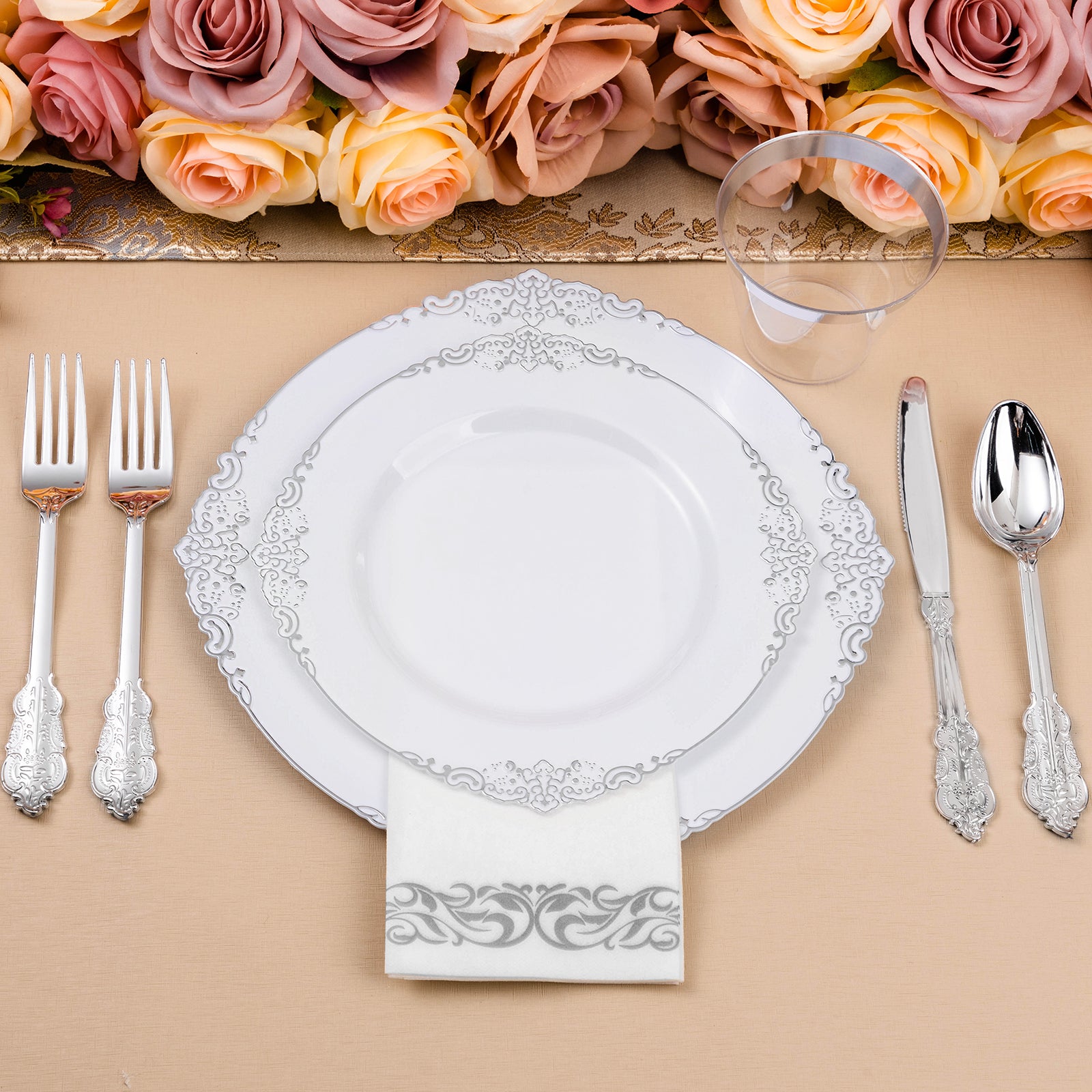 Goodluck 350PCS Disposable Silver Plastic Dinnerware Set for Party & Wedding