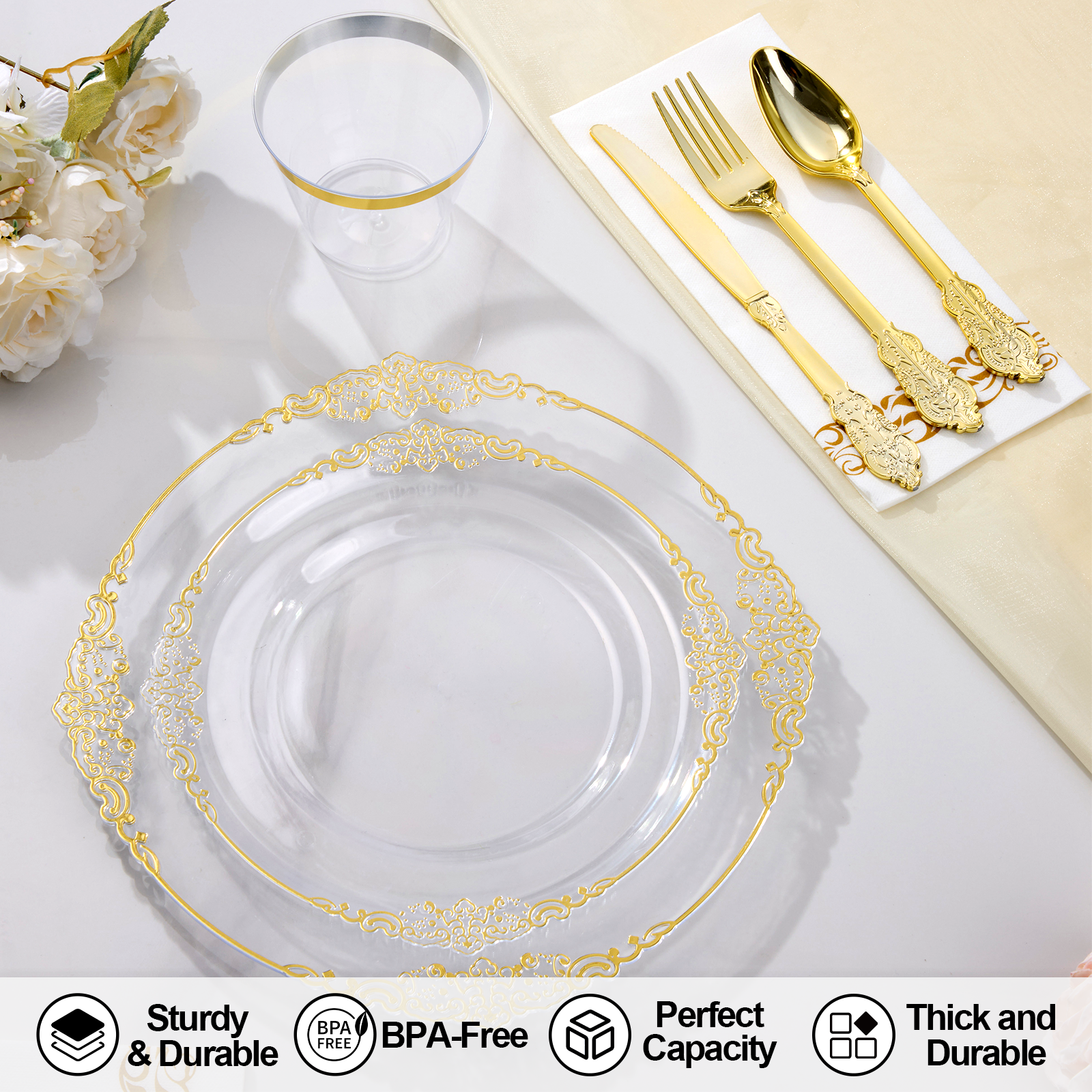 Goodluck Disposable Retro Clear with Gold Rim Dinnerware Set