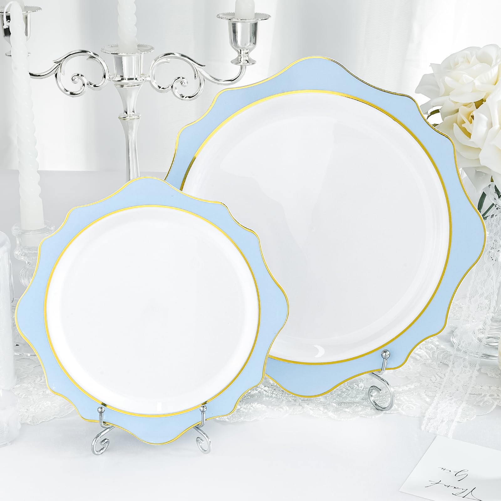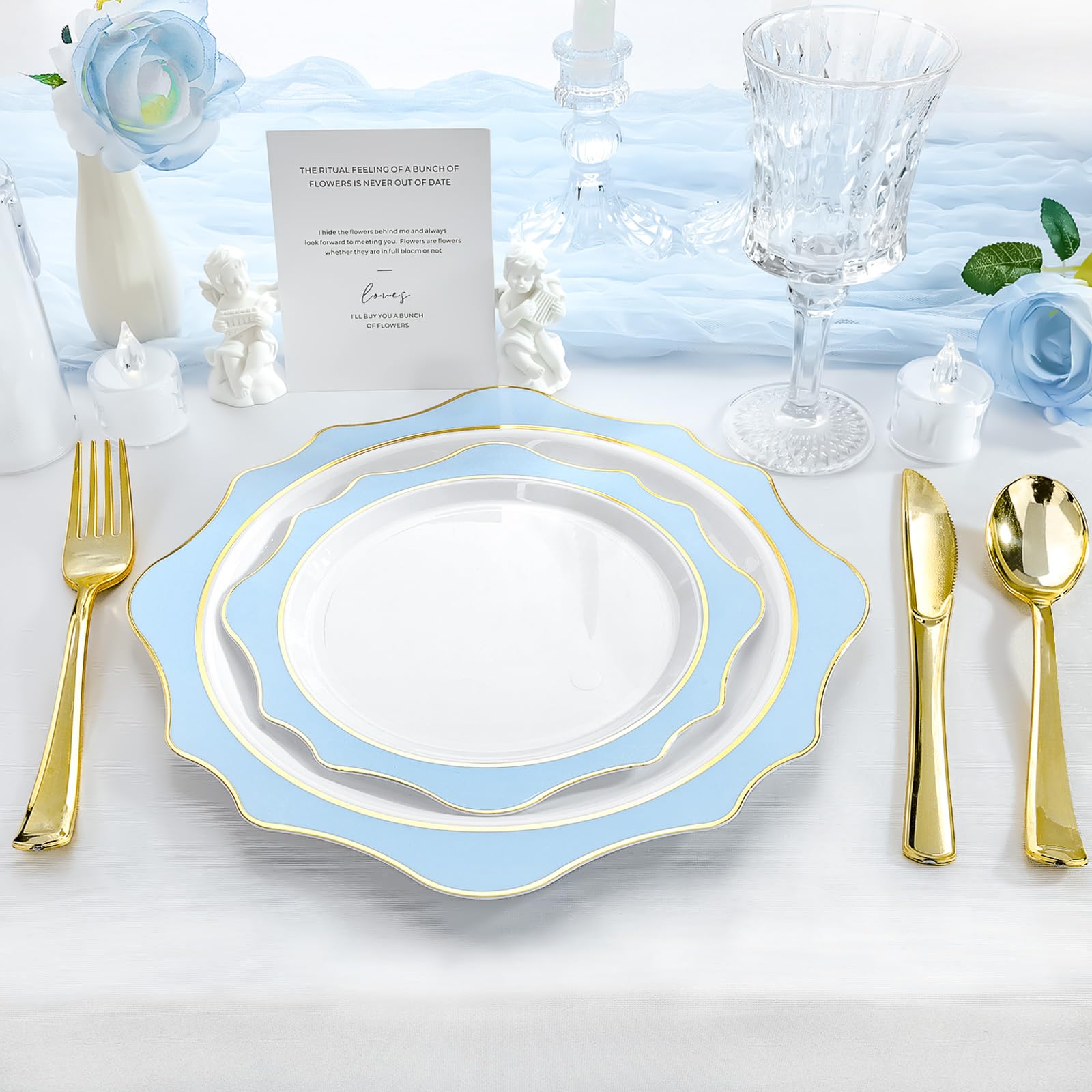 Goodluck 100- Piece Disposable Scalloped White with Blue Rim Plates for 50 Guests