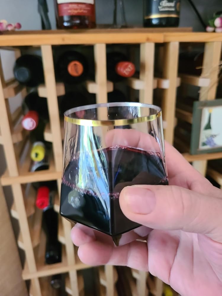 These 12 oz disposable plastic cups are perfect for parties of all sorts. While we used them for an outdoor family gathering, I would definitely use them for more fancy occasions. The faceted shape and gold rim add a touch of elegance and they feel good in the hand. The edges are thin but sturdy. We didn't specifically test the "unbreakable" claim, but every single glass survived though several hand-washings during the July 4th weekend picnics and barbecue. The size was perfect for juices, wine, whiskey and cocktails and they were a hit with both the adults (who wanted to know where to get them) and the kids (who thought they made the soda and seltzers more special). They are lightweight (roughly the same as a standard 12 oz red party cup) but they didn't get picked up by the light wind. I was especially glad to see they are marked with plastic recycle #1 like water bottles so they are accepted in most curbside recycling programs. The price point, the multi-functional use, and ability to recycle make these my new go-to glasses when we host.