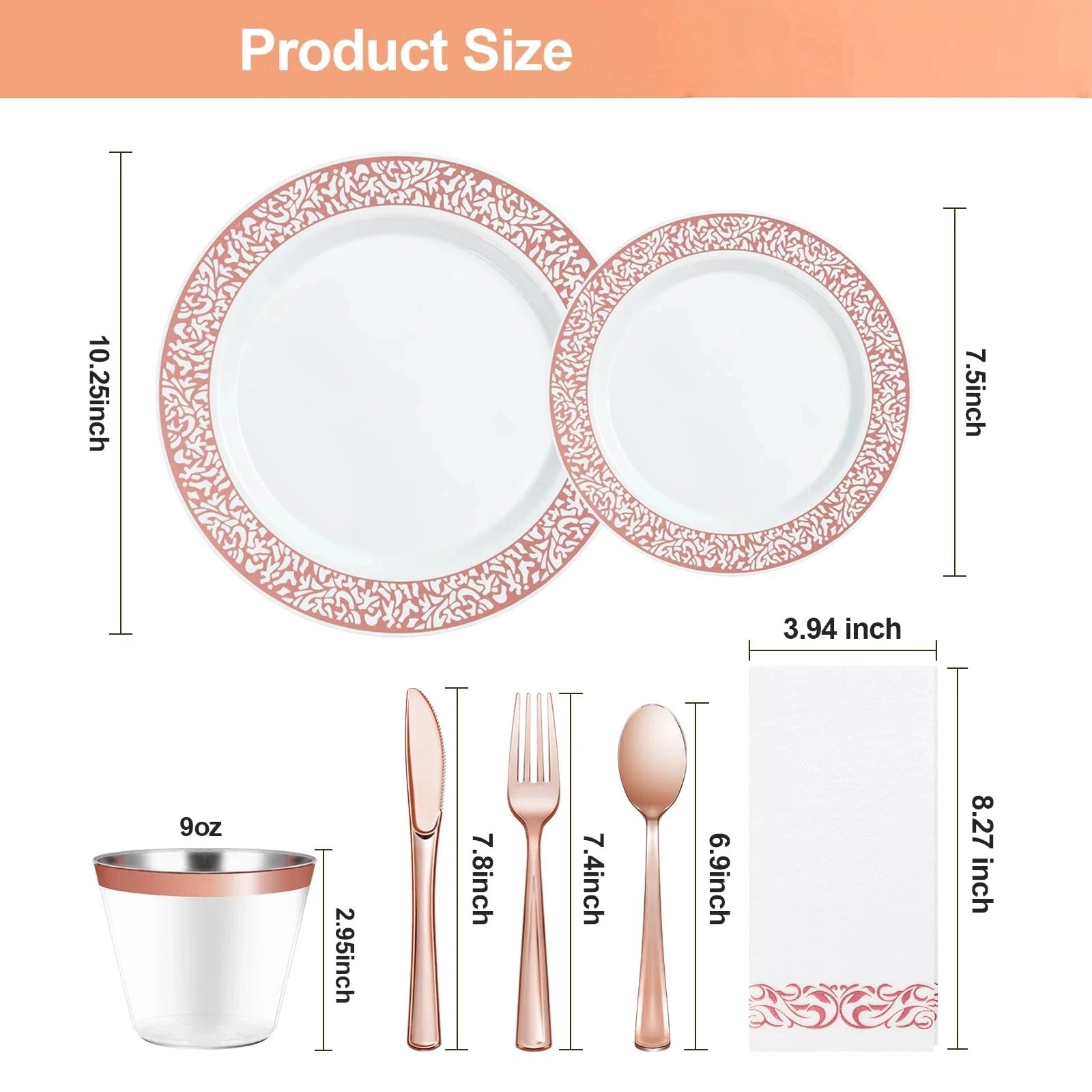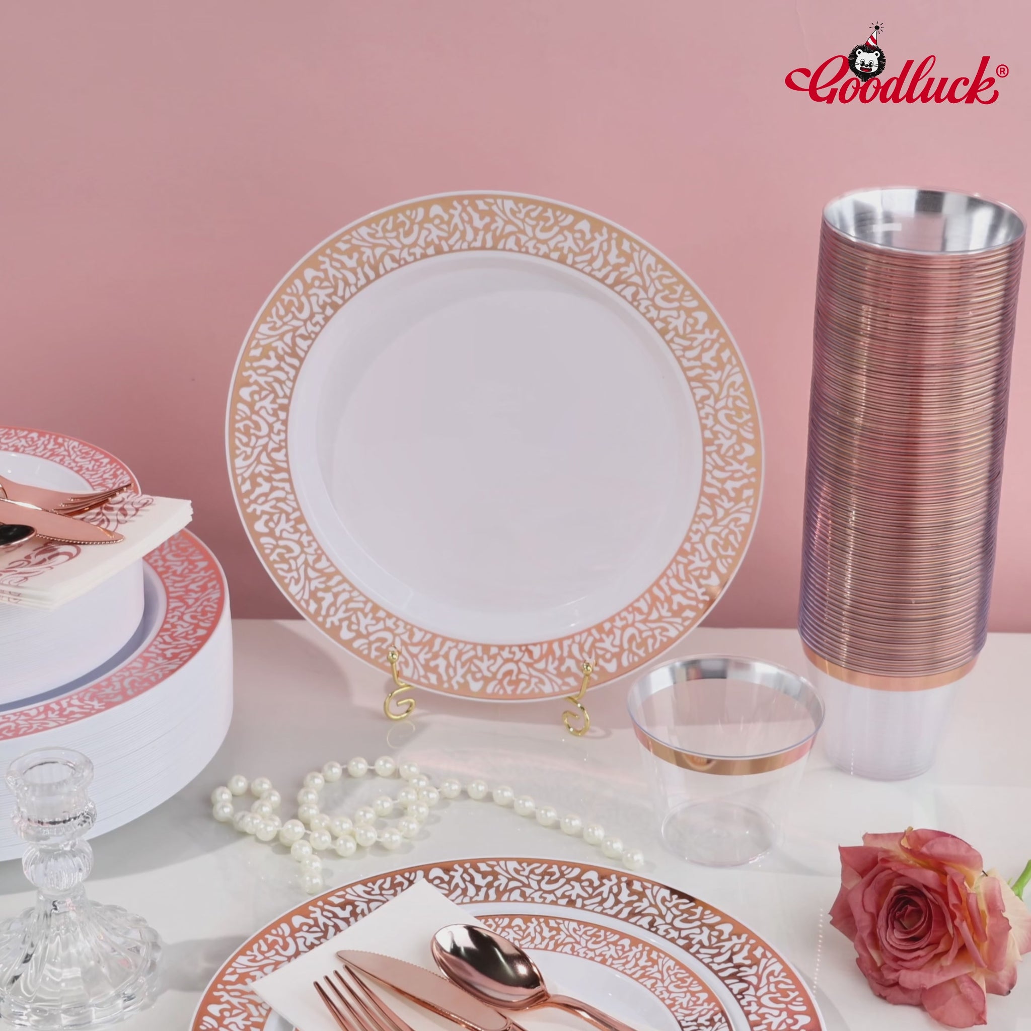 Goodluck Disposable Retro Relief Rose Gold Plastic Dinnerware Set
