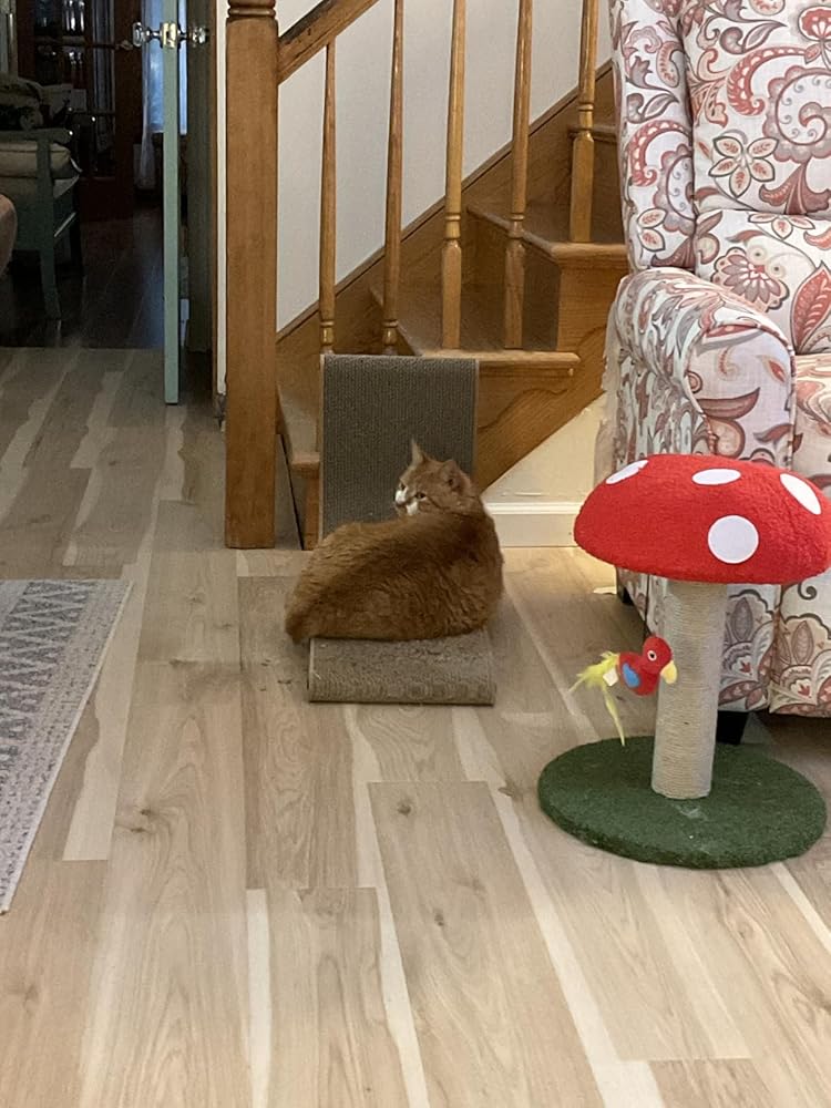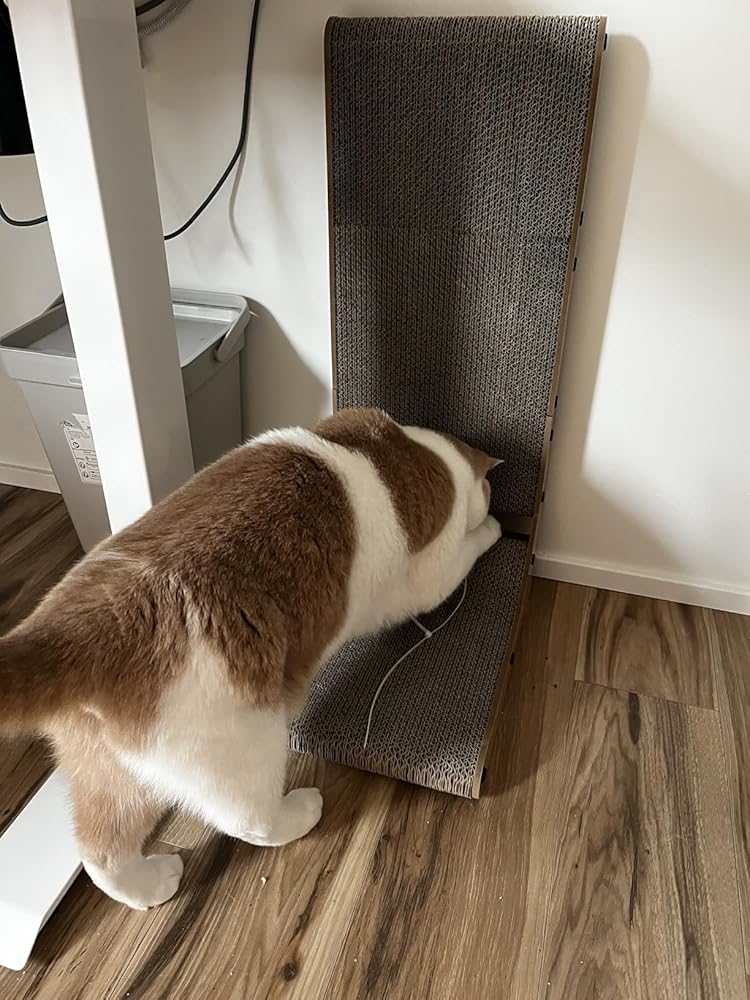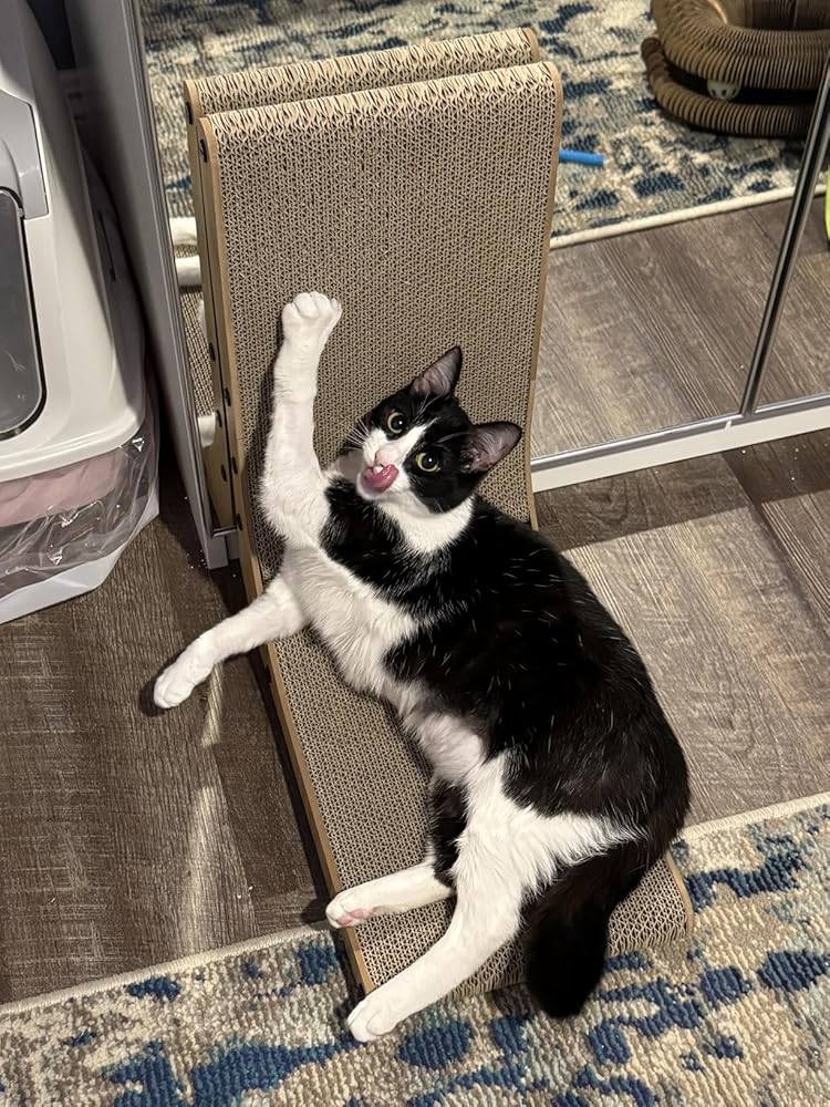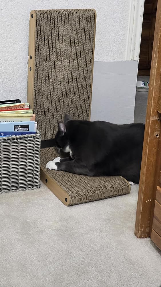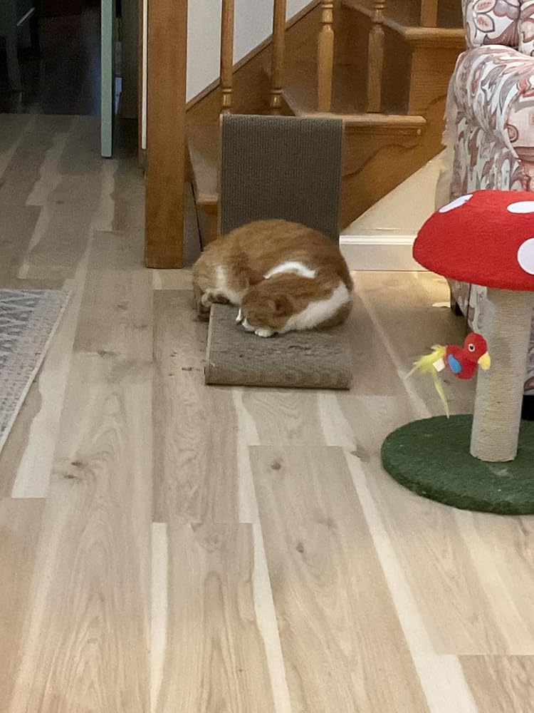 Good scratcher, perfect size. I was expecting the cat will stand on it and scratch the vertical part but he never did.The only downside might be it just won’t stick to the wall.