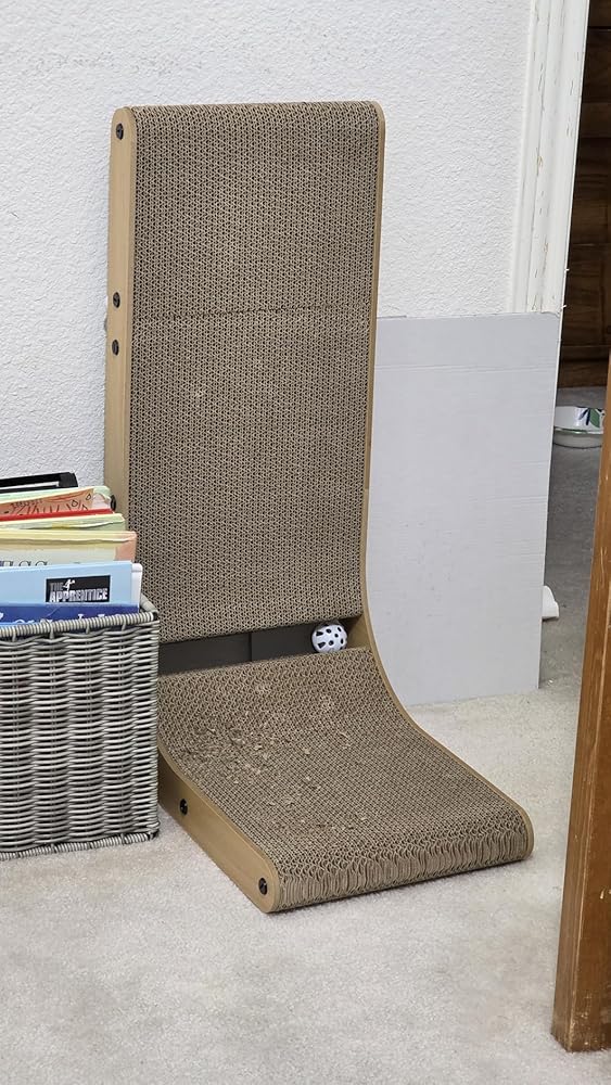 Goodluck Poils bebe L Shape 26.8 Inch Cat Scratcher with Ball Toy for Indoor