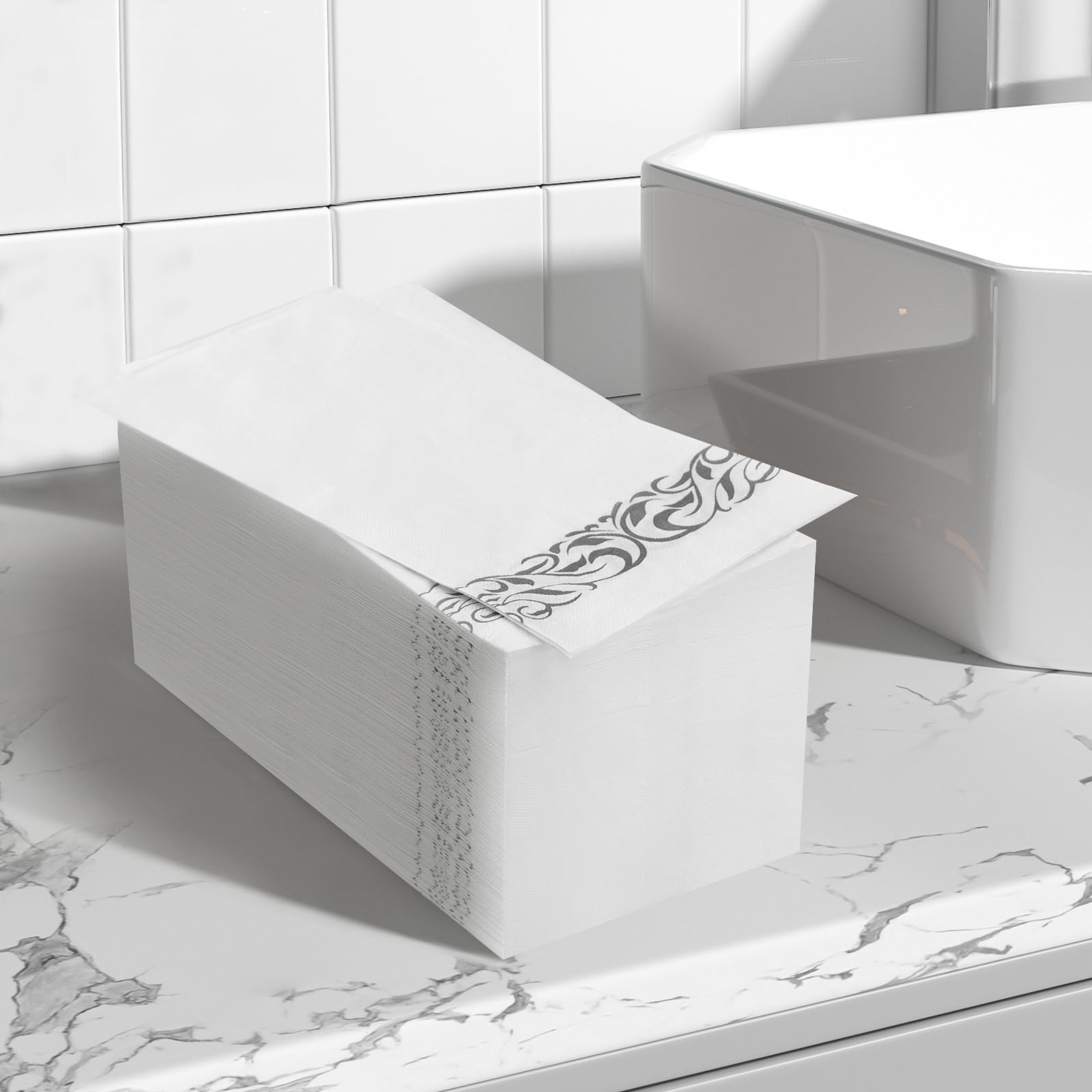 Goodluck 3-Ply Dinner Disposable Napkins with Silver Trim Perfect for Kitchen, Dinner, Party, Wedding, or Event