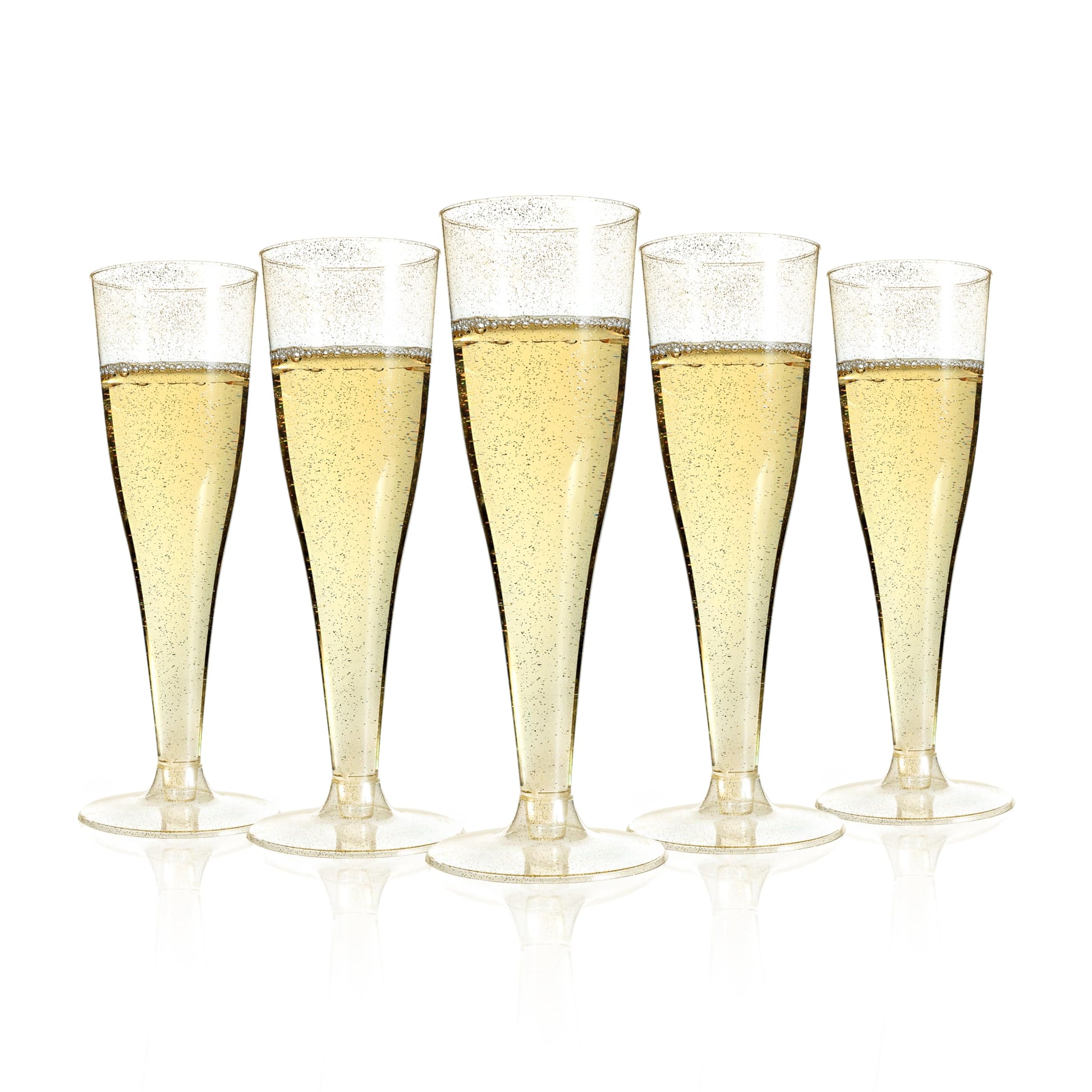 Goodluck 4.5 oz Disposable Gold Glitter Plastic Stemware for Party, Mimosa Bar, Wedding, Anniversary, and Graduation