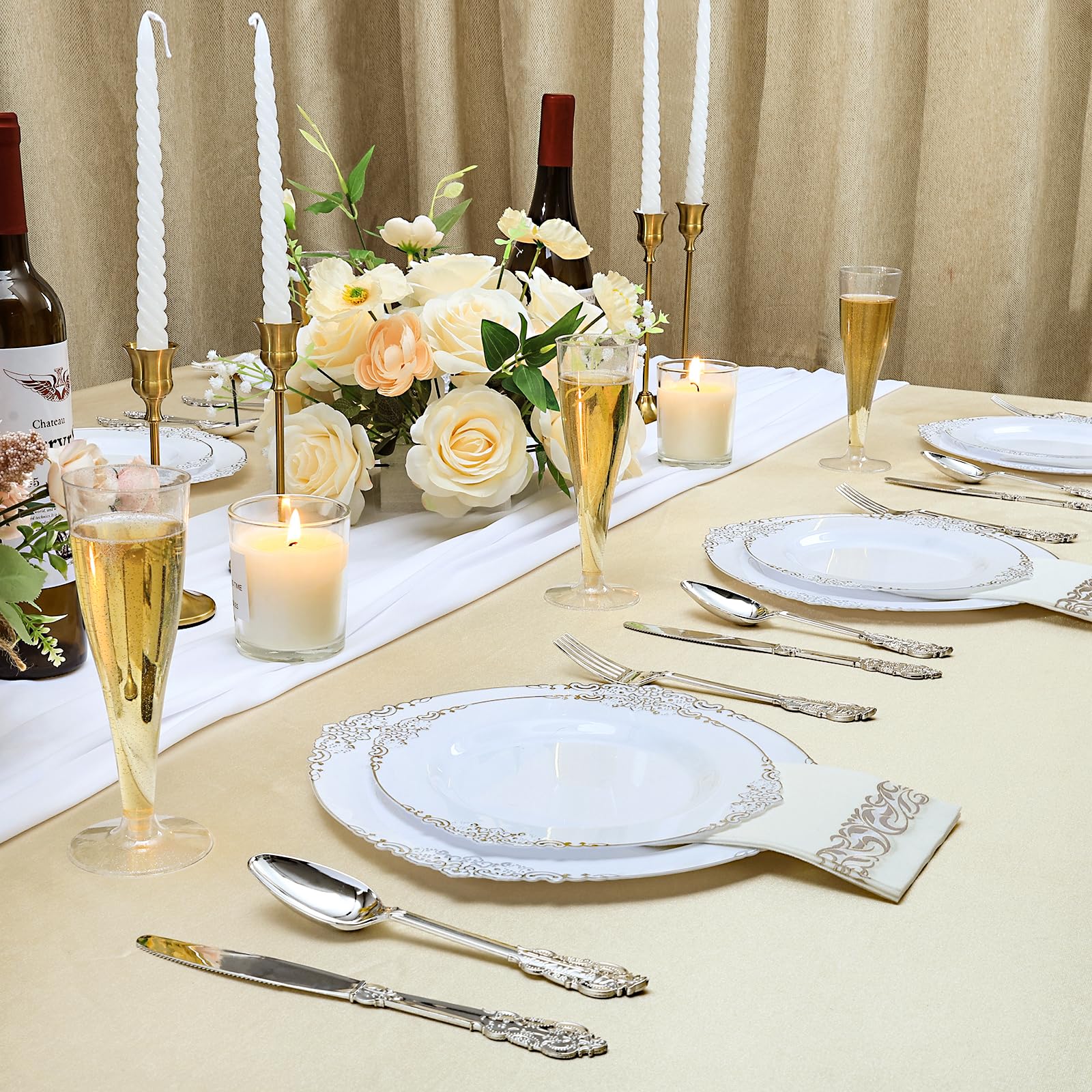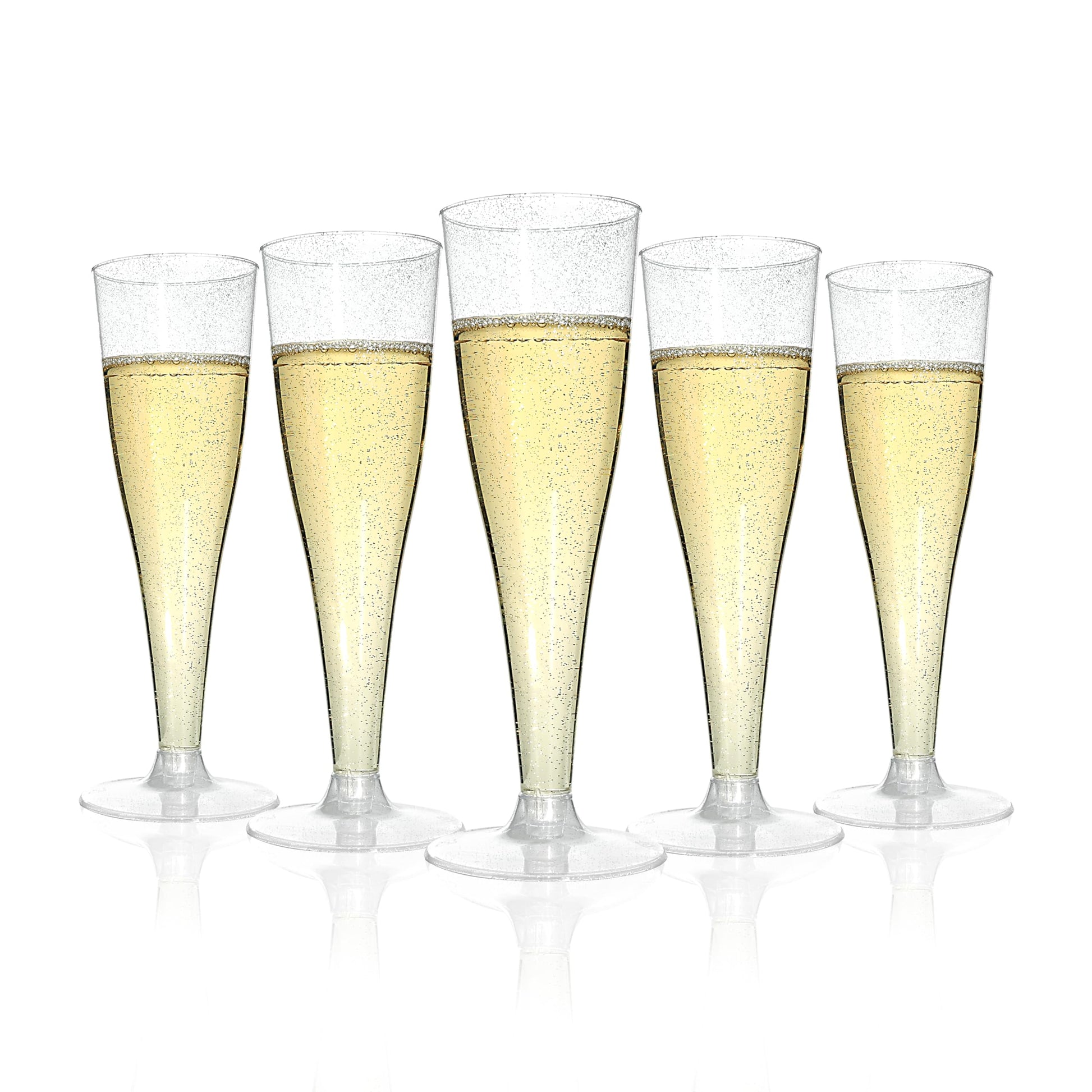 Goodluck 100 Pack 4.5 oz Disposable Silver Glitter Plastic Stemware for Party, Mimosa Bar, Wedding, Anniversary, and Graduation