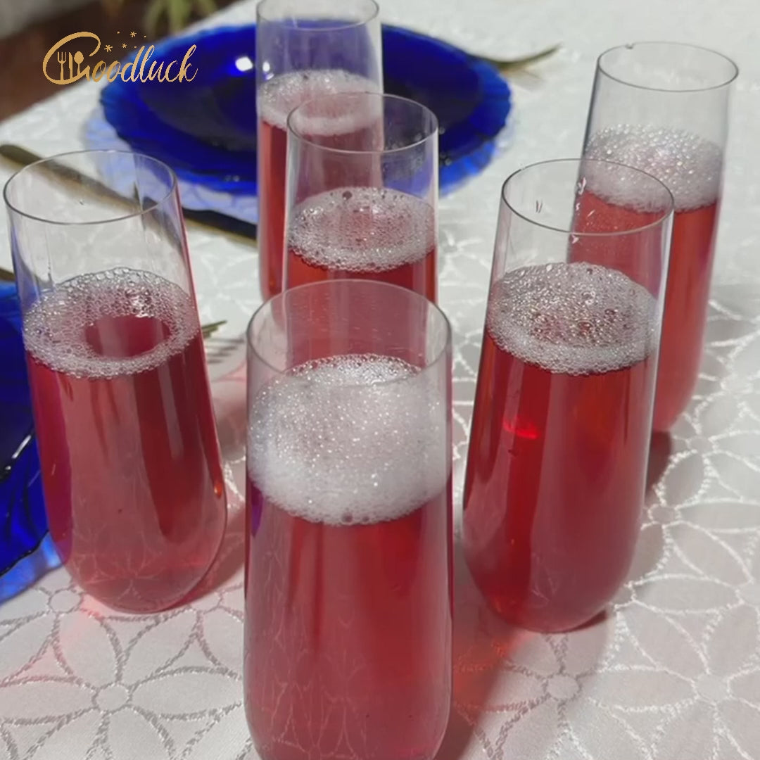 Goodluck 9 oz Disposable Stemless Clear Plastic Champagne Flutes for Party,Graduation,Wedding