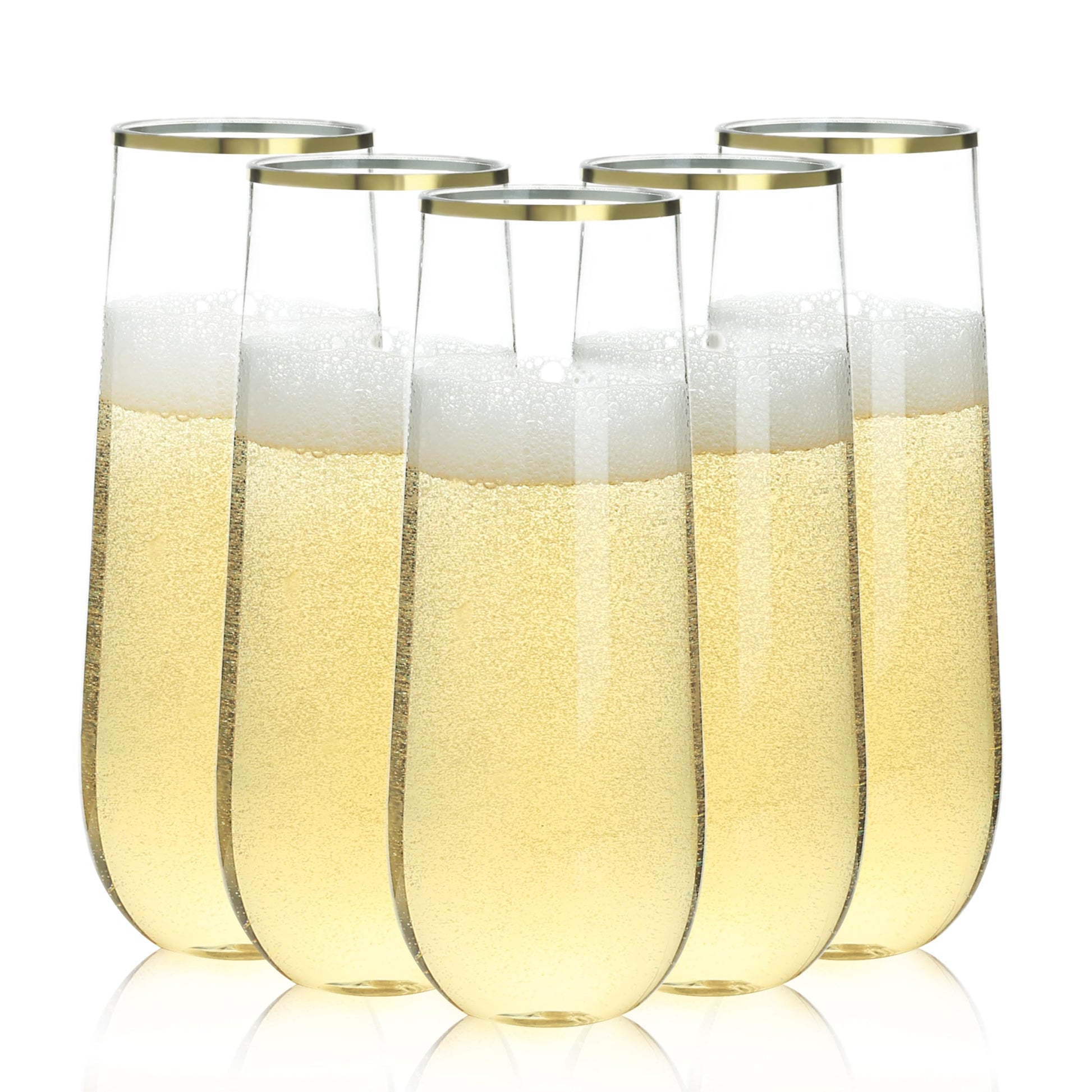 Goodluck 9 oz Disposable Stemless Clear with Gold Rim Plastic Champagne Flutes for Party, Graduation & Wedding