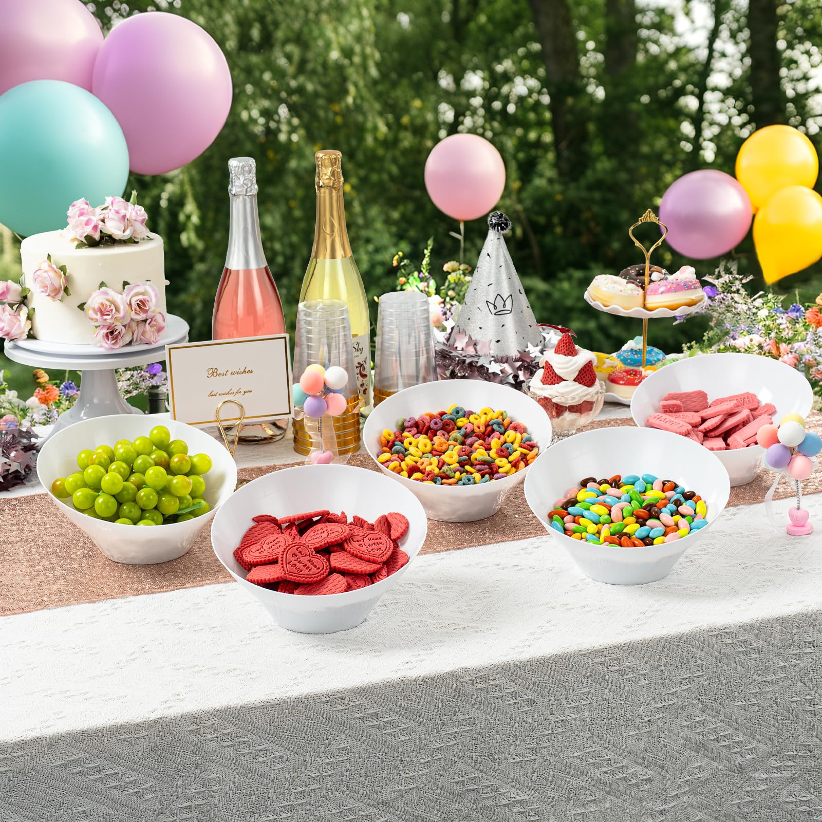 I first saw these bowls at a party and immediately knew I had to get them for my own gathering. They have such a sleek, modern shape that really makes a table look more polished, and they instantly impressed my guests. Beyond just the style, they are lightweight yet sturdy, and they work perfectly for casual setups without feeling flimsy.I used them for finger foods like popcorn, pretzels, cookies, and other snacks, and they worked beautifully. The angled design makes them easy to reach into, and the clear plastic shows off the food nicely. They are a simple but impactful upgrade from standard serving bowls, and I was glad to have them on hand. For anyone hosting parties, these are a great combination of functionality and presentation. I rewashed them as well to use at my next party too!