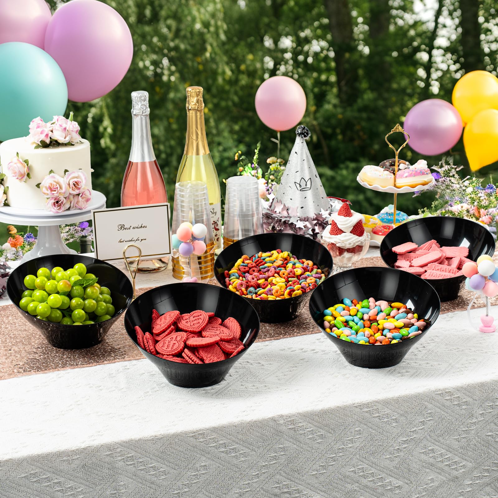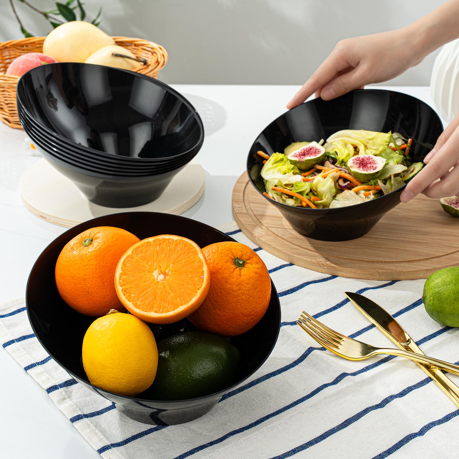 Goodluck 12 Pack Disposable 20 OZ Angled Black Plastic Serving Bowls for Salad & Fruit