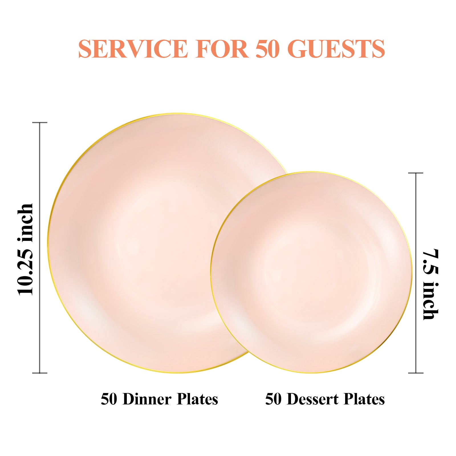 Plates Include: 50 10.25-inch dinner plates and 50 7.5-inch dessert plates