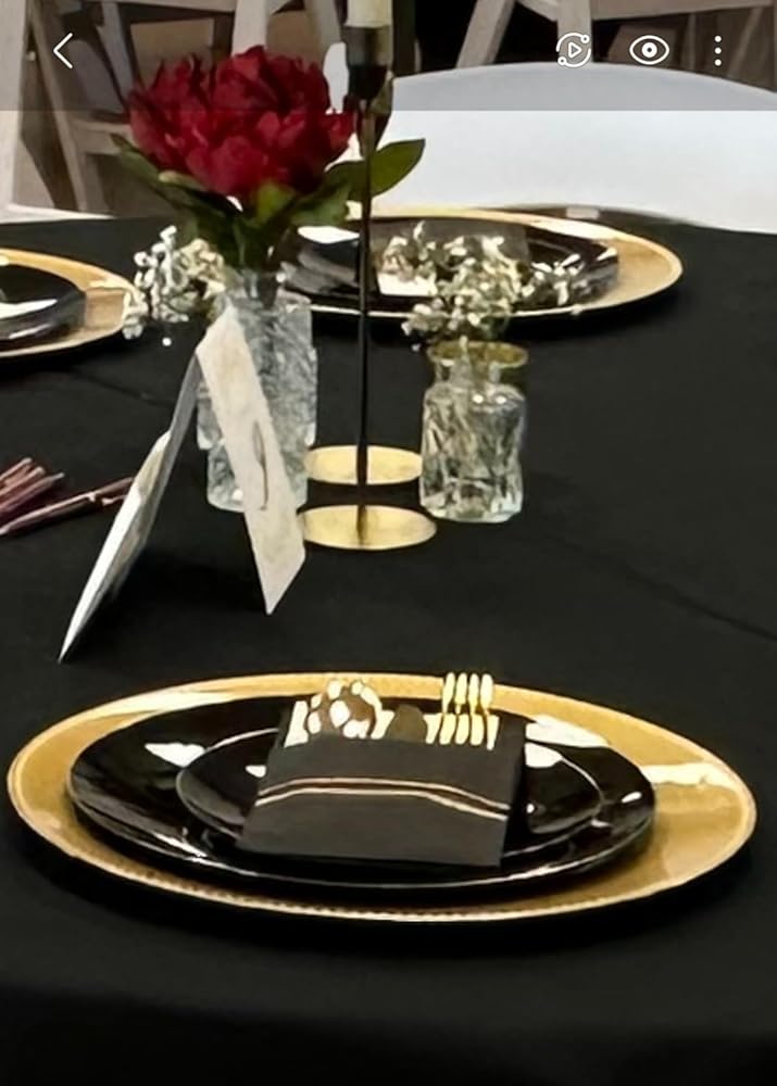 The plates looked beautiful on the tables. We used with gold chargers. So happy with the purchase.