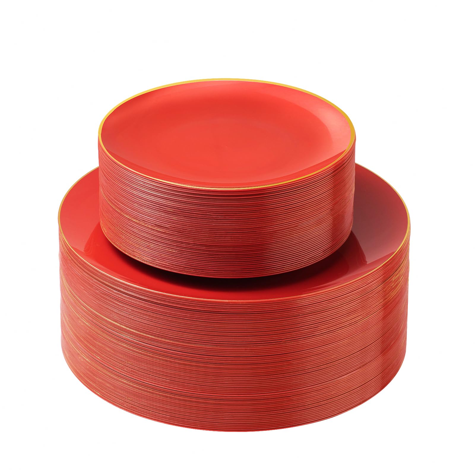 Goodluck 100PCS Disposable Red Plastic Plates for Party, Graduation