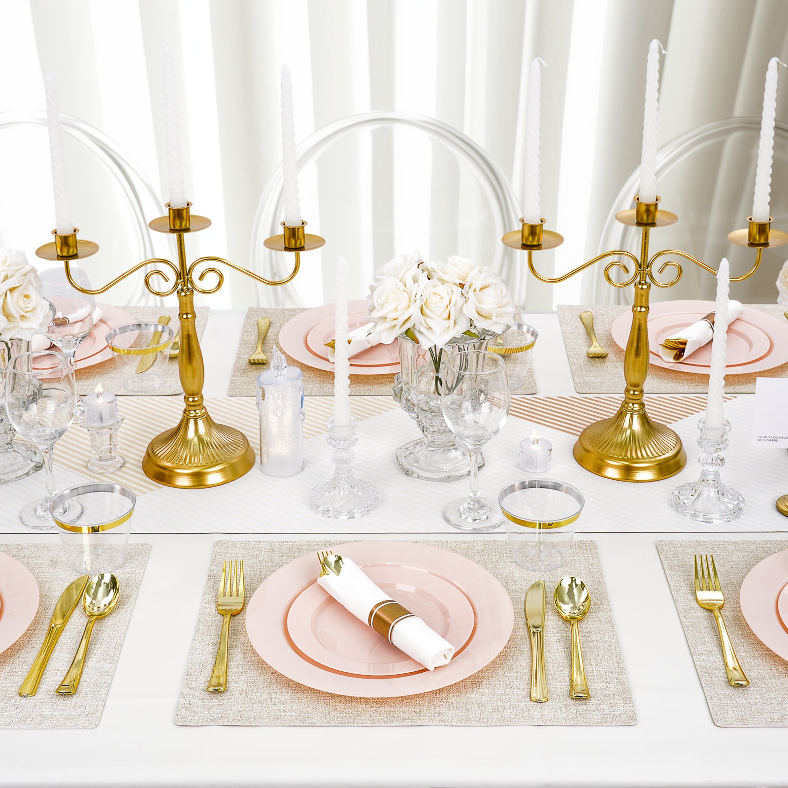 Goodluck 350 PCS Disposable Pink Plastic Dinnerware Set for Party, Wedding, Graduation
