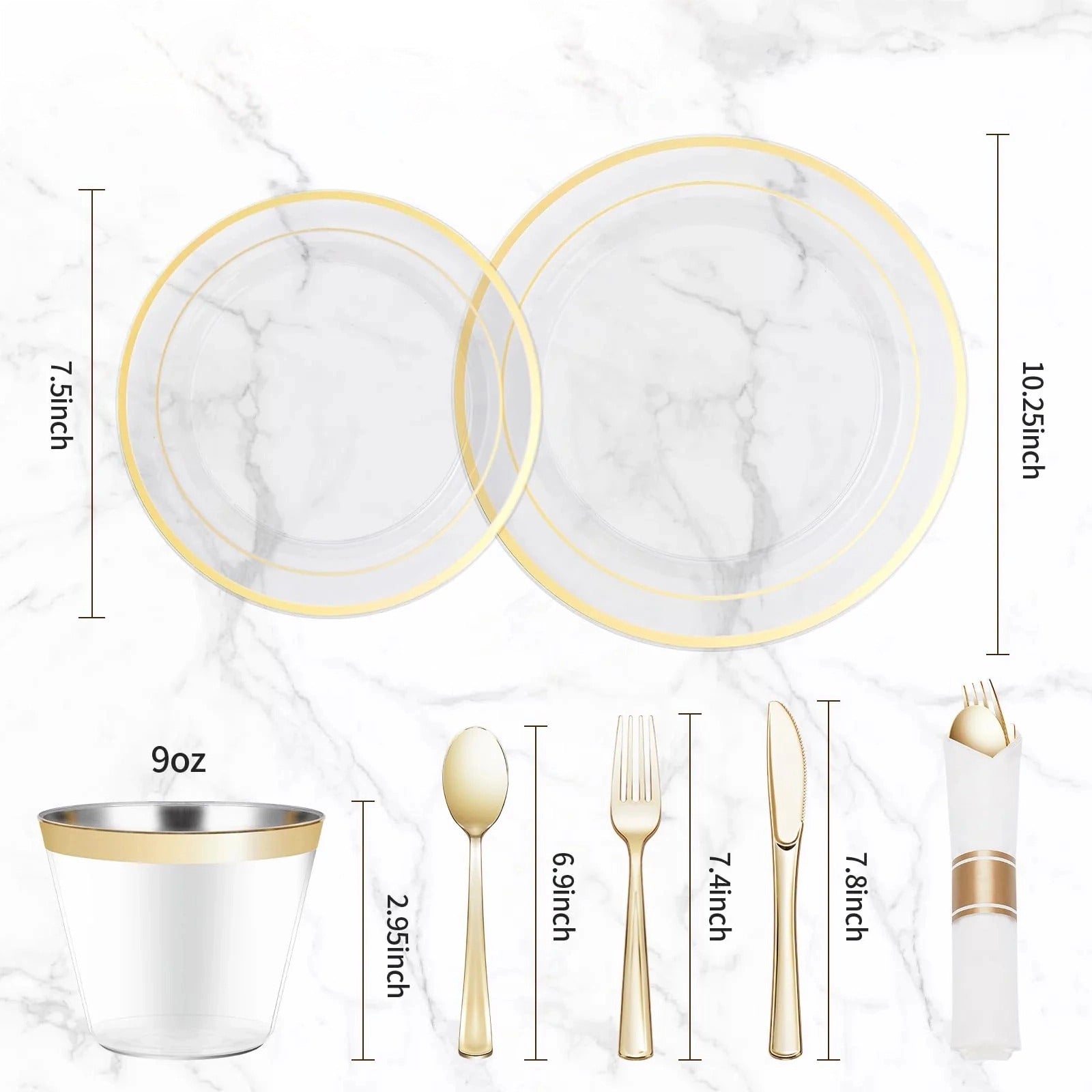 Goodluck Disposable Clear Gold Plastic Dinnerware Set