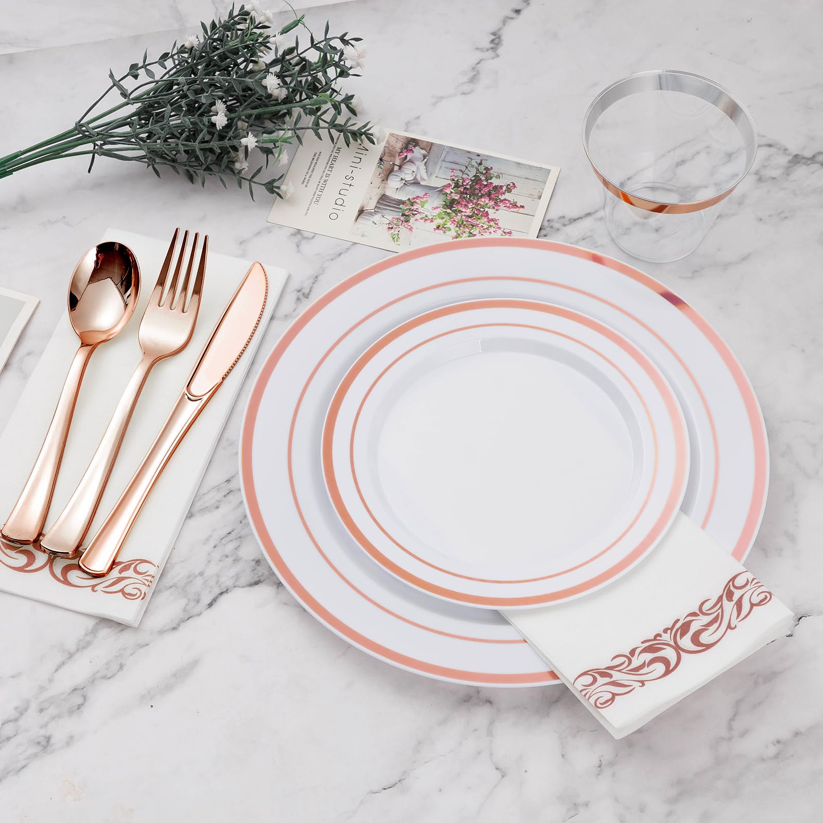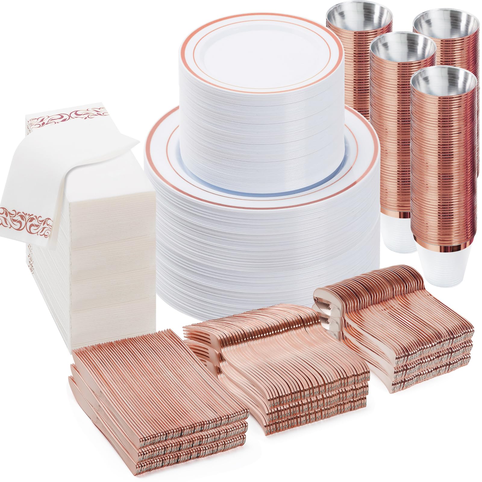 Goodluck 700-Piece Disposable Rose Gold Plastic Dinnerware Set for 100 Guests