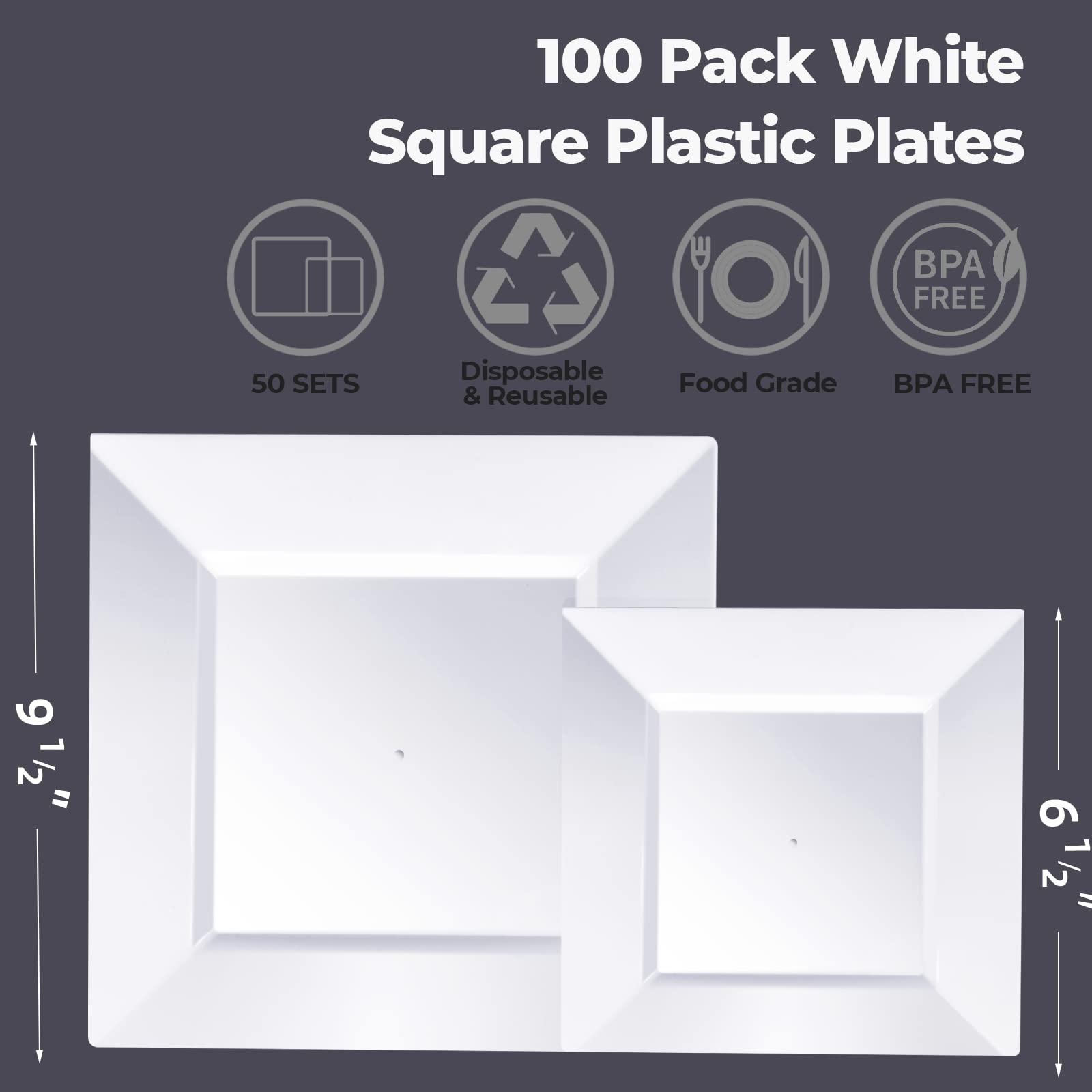 Goodluck 100 Pack Heavy Duty Square Plastic Plates