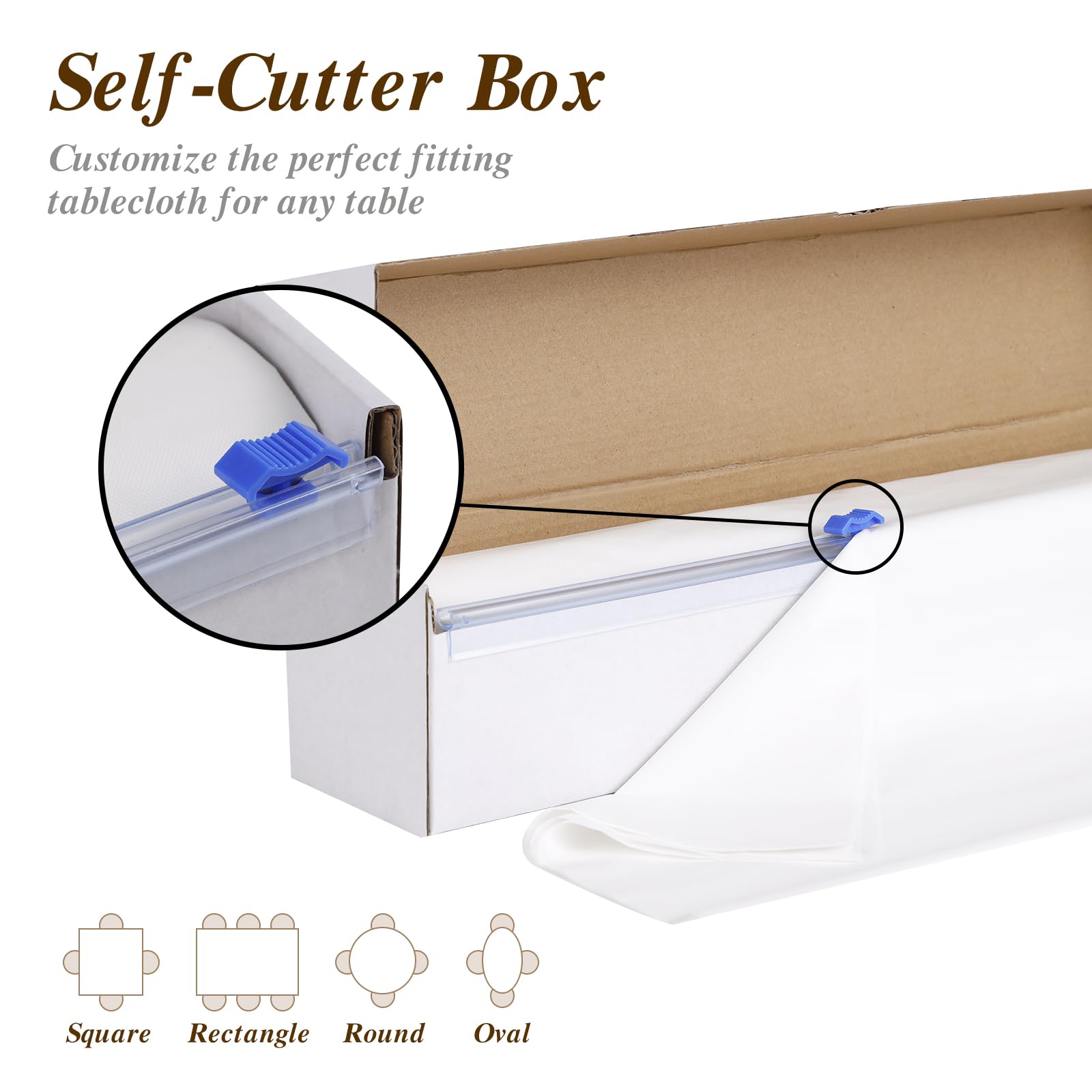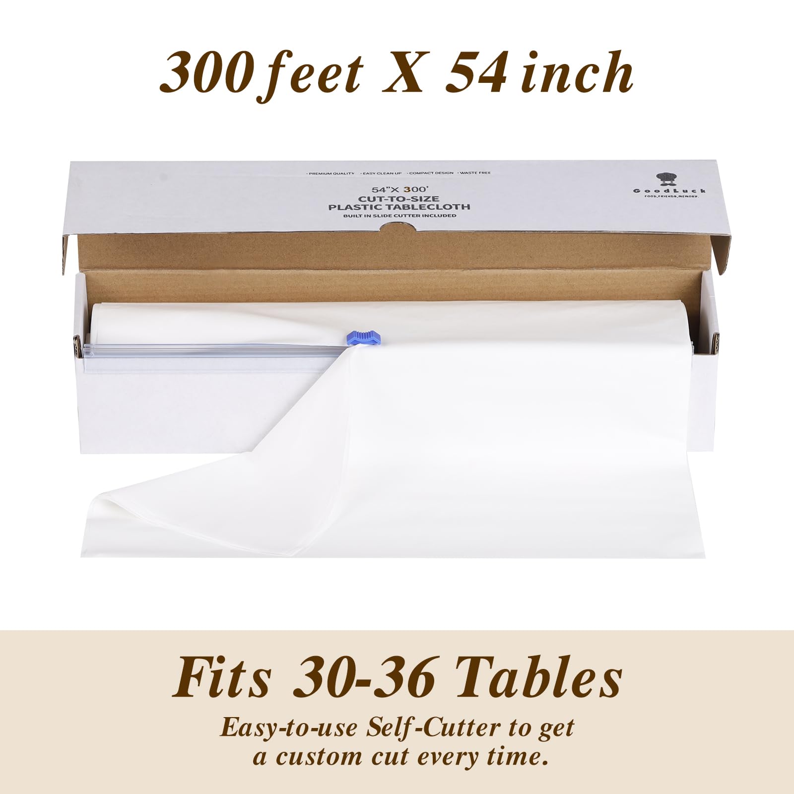 Goodluck 54 Inch X 300 Feet White Plastic Table Cloths with Cutter Box