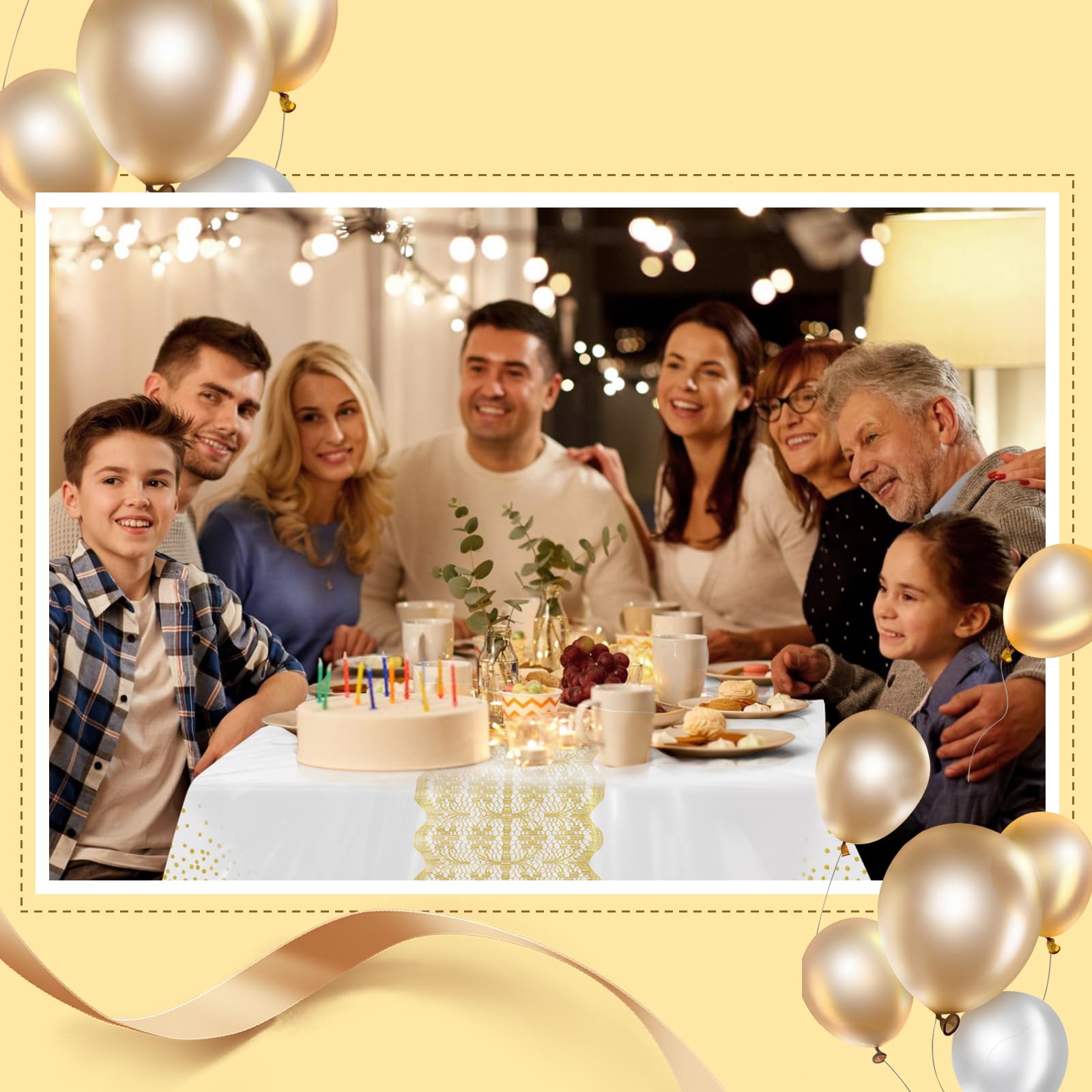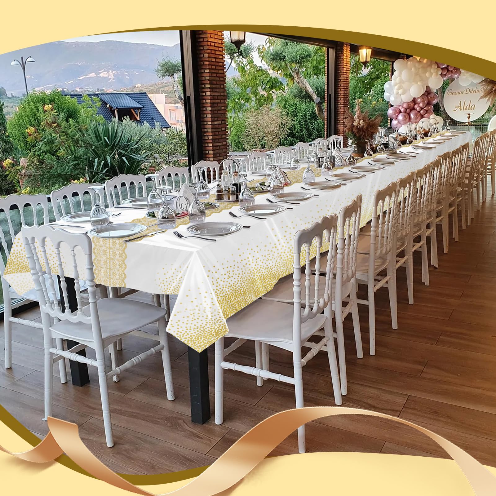 Goodluck 54 Inch X 300 Feet White Gold Dot Plastic Table Cloths with Cutter Box